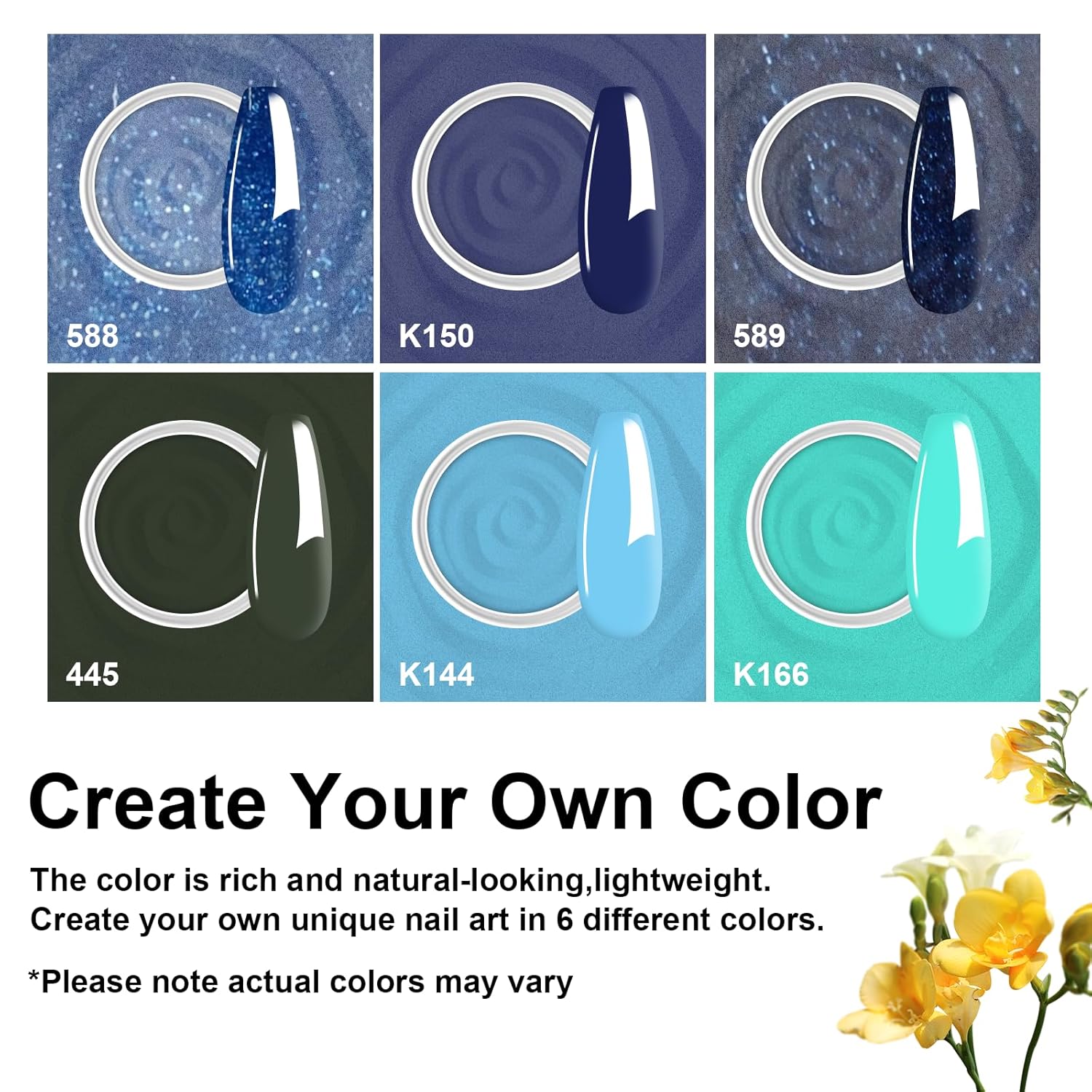 - 【Warm Prompt】① Avoid direct contact with skin, if there is any incident, contact the doctor. ②The effection of dip powder may show differently in different people, 2~3 base coats while using will be the best.