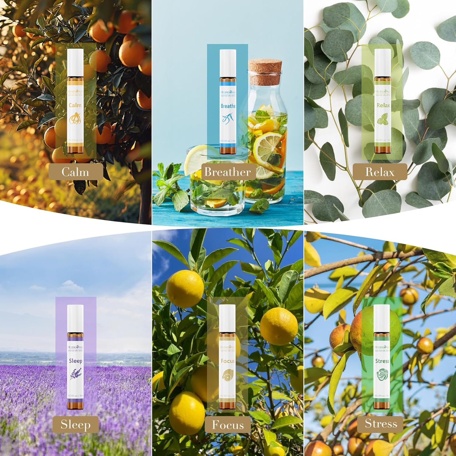 Aromatherapy Essential Oil Roll On Blend Relaxation Gift for Women, Natural and Pure Essentail Oils with Travel Size Roller Ball Bottle (Stress, 1)