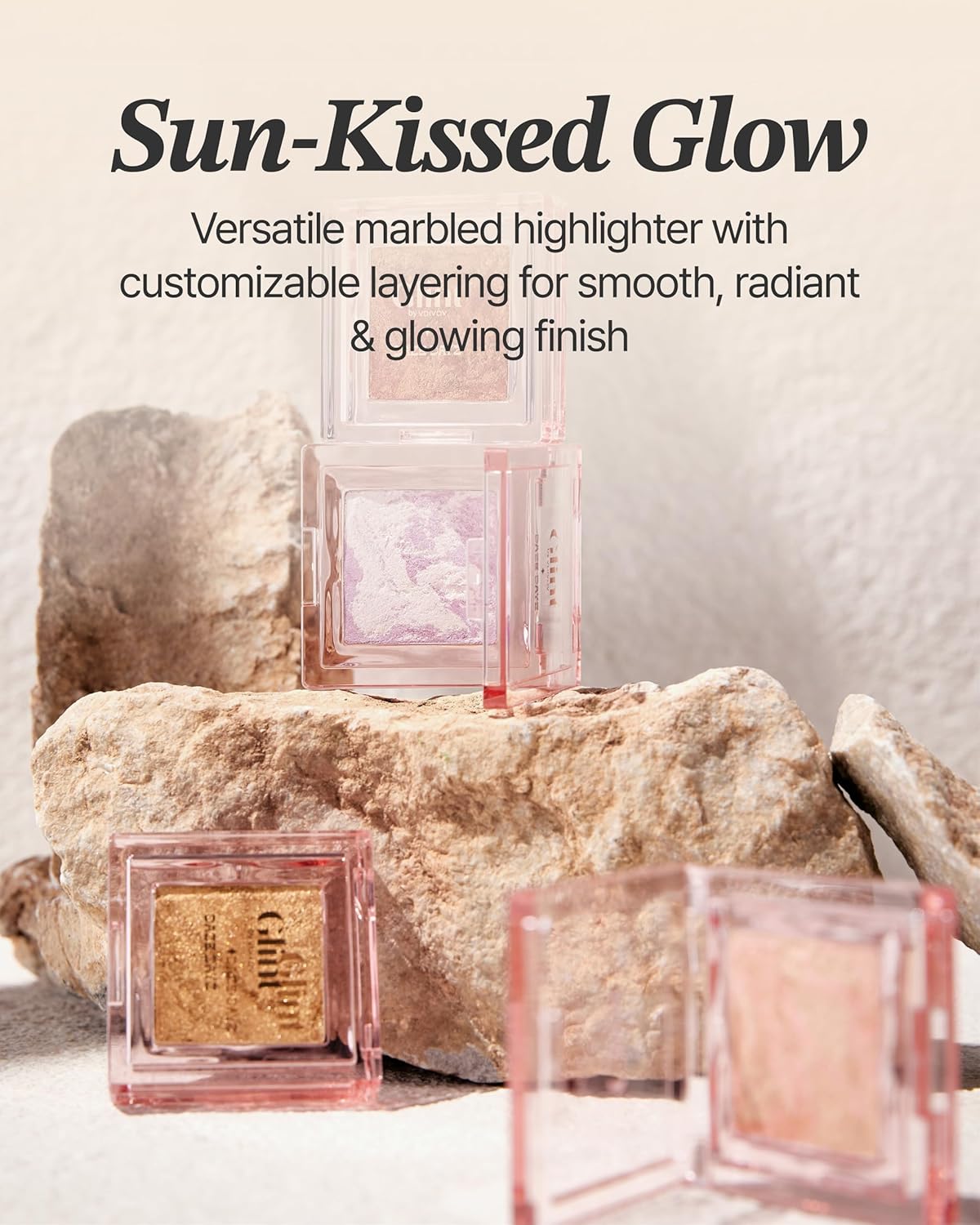 Glint Marble Highlighter (Afternoon Bronze, 0.08oz) - Korean Makeup. Inspired Baked for Smooth, Radiant Glow, Long-Lasting Wear. Enriched with Micro Pearl Particles