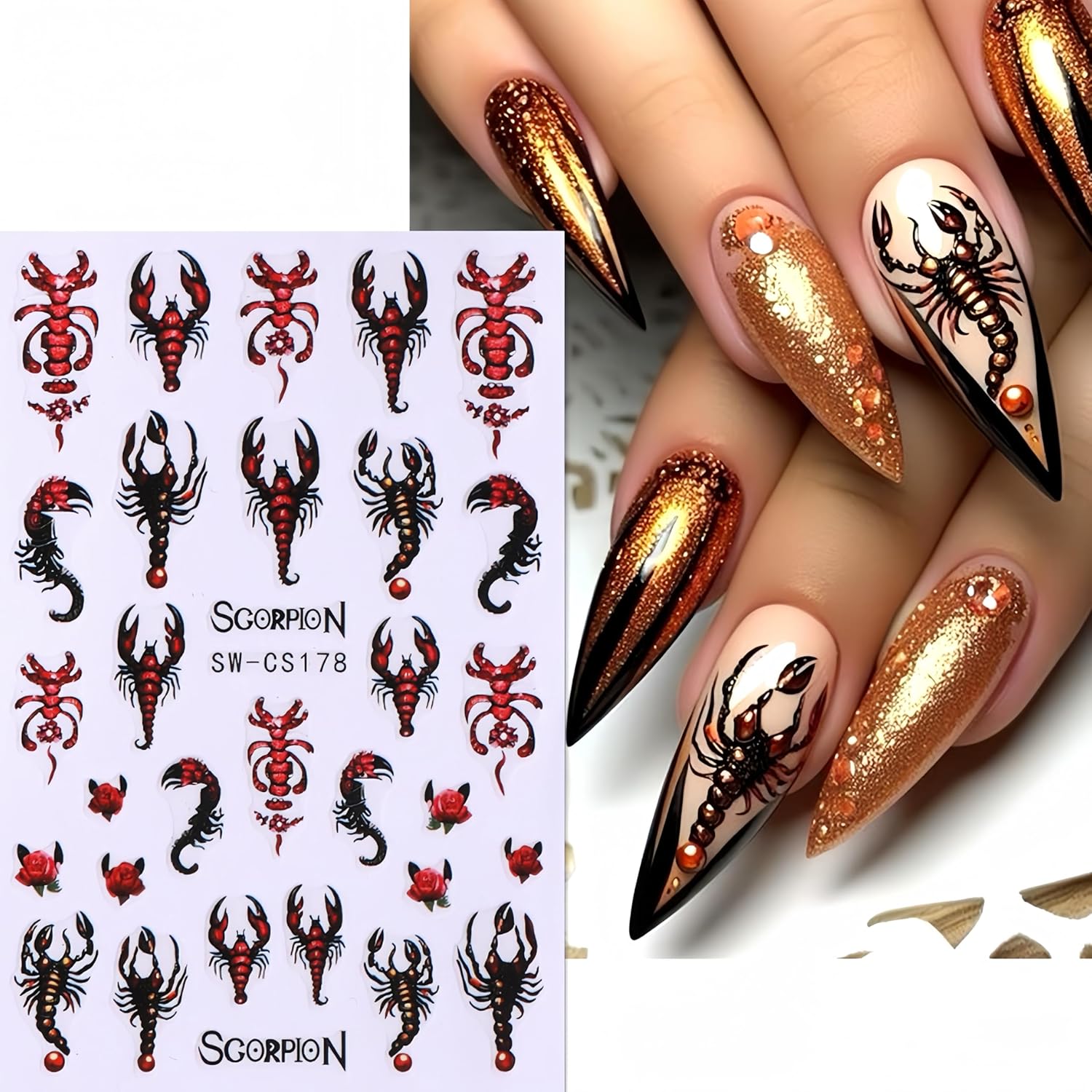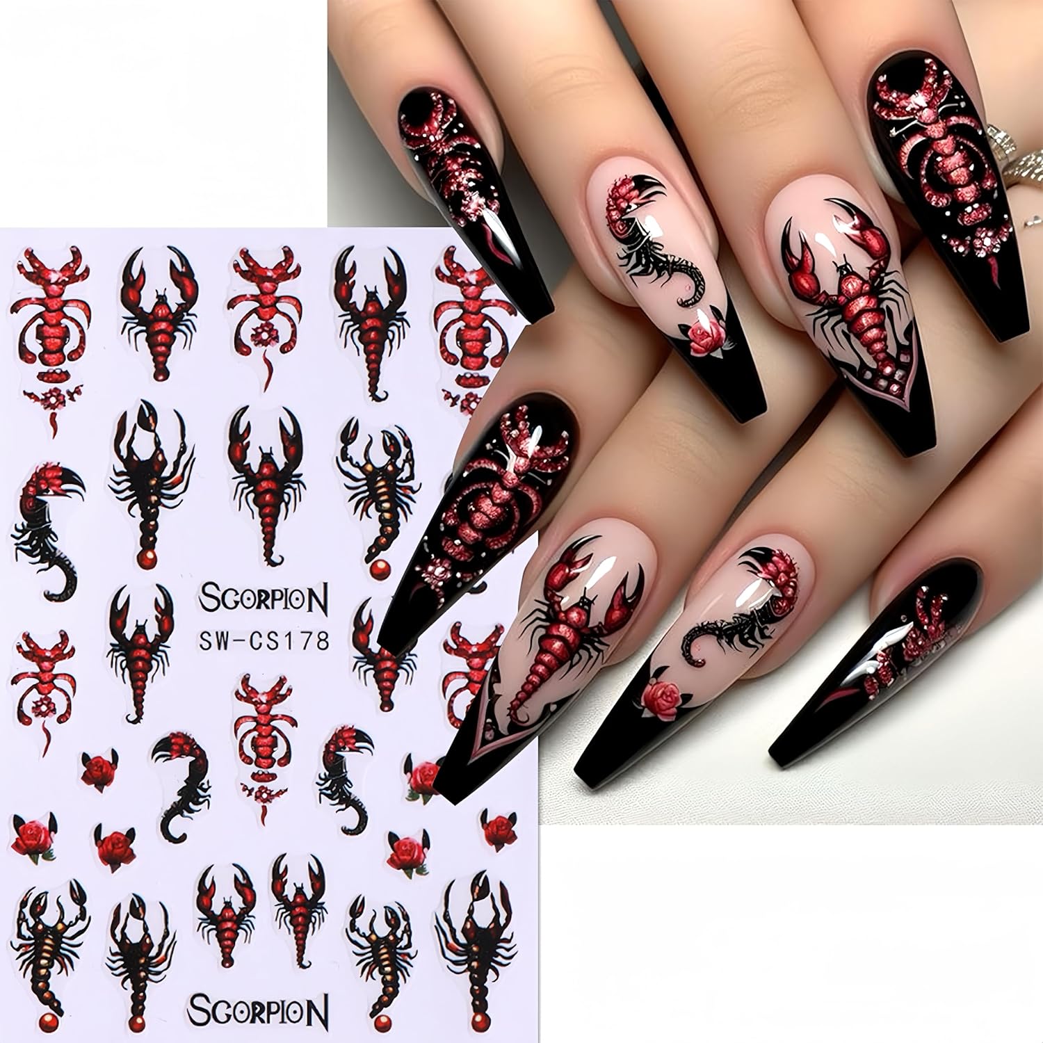 • Easy to Use: Scorpion nail stickers decal are self-adhesive, ompleting fashion-cool nail art design in just a few seconds. If you want to keep it for a long time, you need to apply nail polish on the surface for reinforcement.