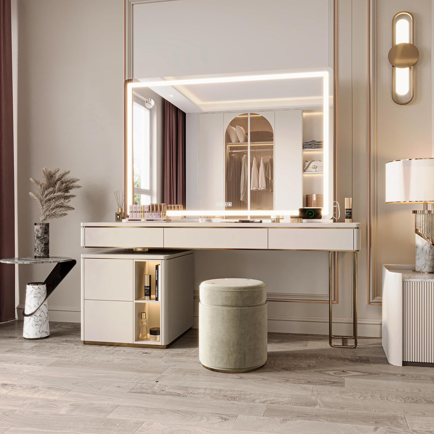 - đăBrightness Adjustable and 3 Color Lighting ModesăHASIPU lighted makeup mirror surrounded by 50,000 hours life Max 6000 Lumens high brightness LED Light Strip, with warm /natural /cold white three-tone settings, adjustable brightness 0%-100% can meet your makeup requirement.