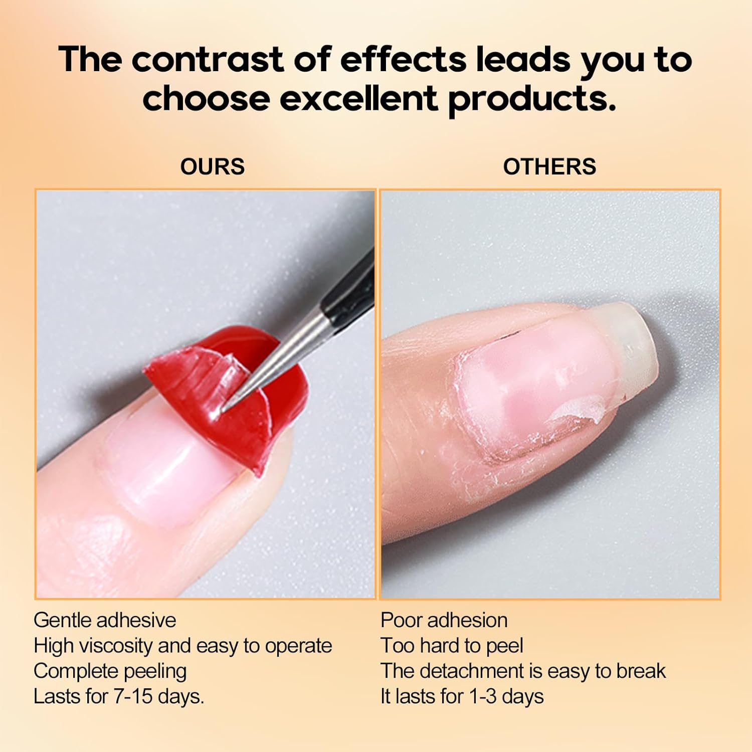 - EASY TO PEEL:15ml Peel Off Base Gel won't harm your natural nails. With peelable base gel, there's no need to soak-off, file and scrape it when removing, which can save your nail bed well, giving your smooth nail bed. It can be used with all brands of gel nail polish.