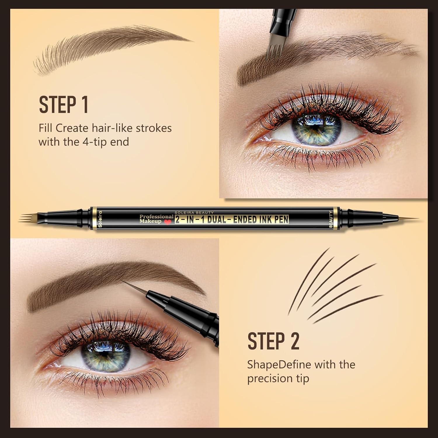 Eyebrow Pen, Soleira Waterproof Eyebrow Pencil with 4 Tip Microblading Eyebrow Pen and Dual-ended Eyebrow Brush, for Natural-Looking Brows, Long-Lasting, Ash Brown