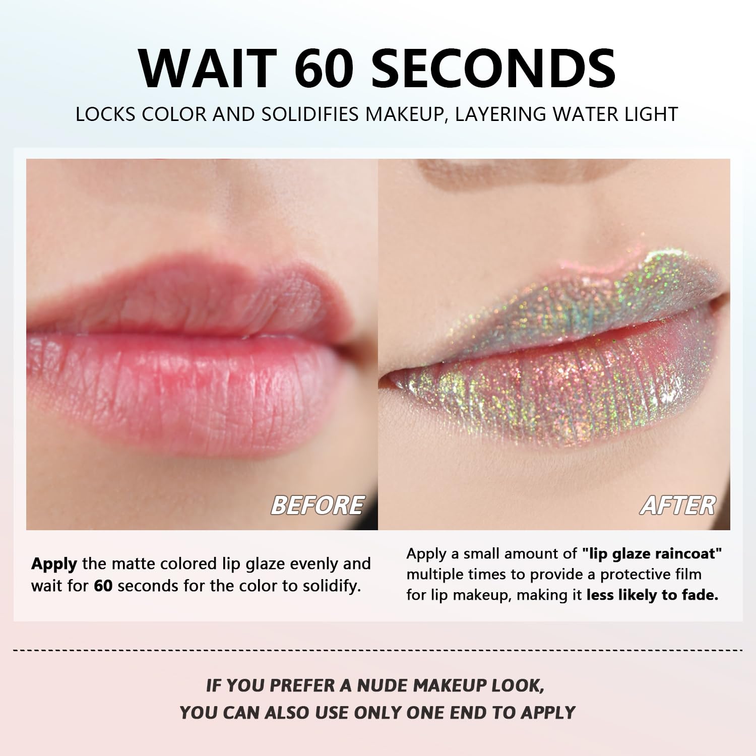 CHARMACY 2 In 1 Multichrome Moisturizing Lip Gloss, Double Head Liquid Lipstick, Mirror Waterproof Long Lasting No Fading Lip Balm, Hydrating Lip Plumper Waterlight Glossy Makeup #002