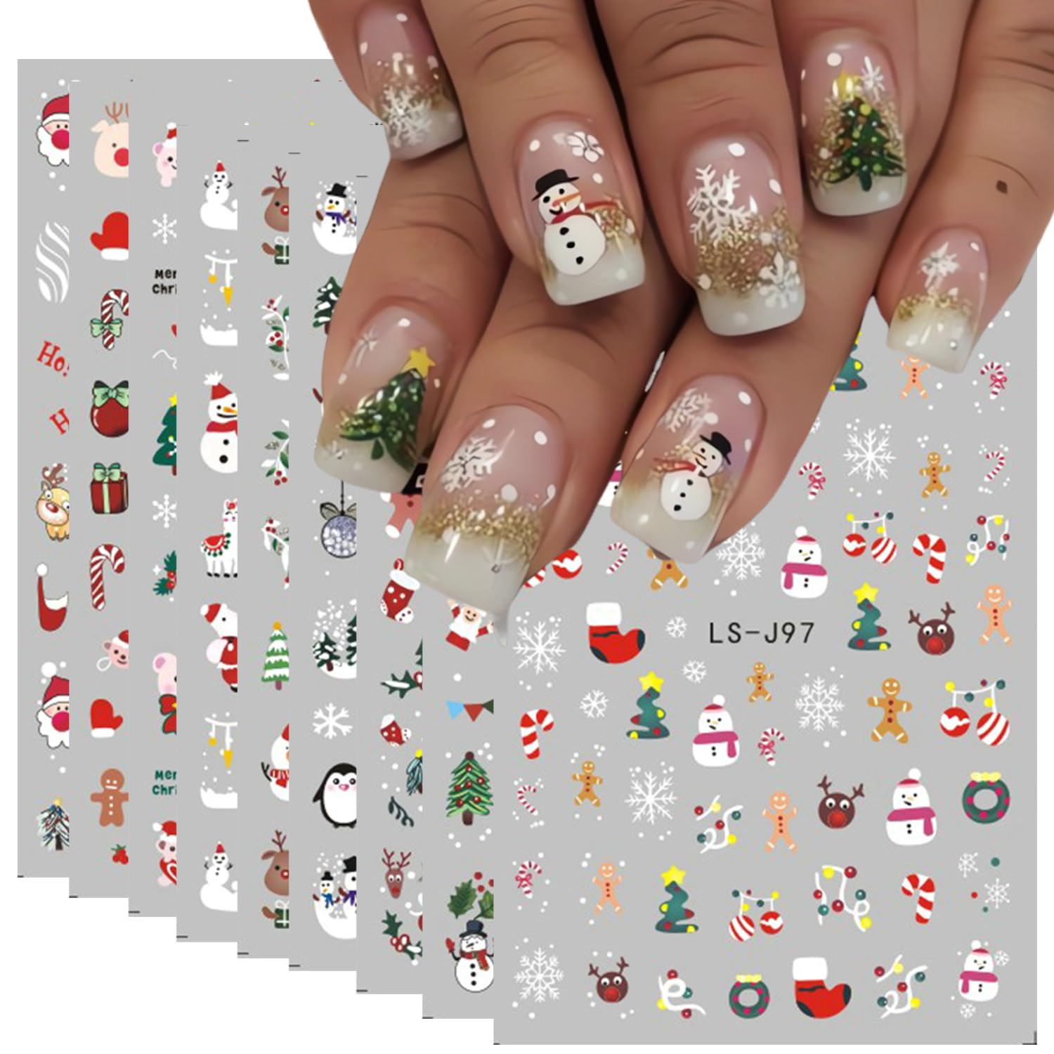 - Festive Designs: Includes 9 sheets of 3D Christmas nail art stickers featuring adorable Santa Claus, reindeer, and snowflake designs for a fun holiday look