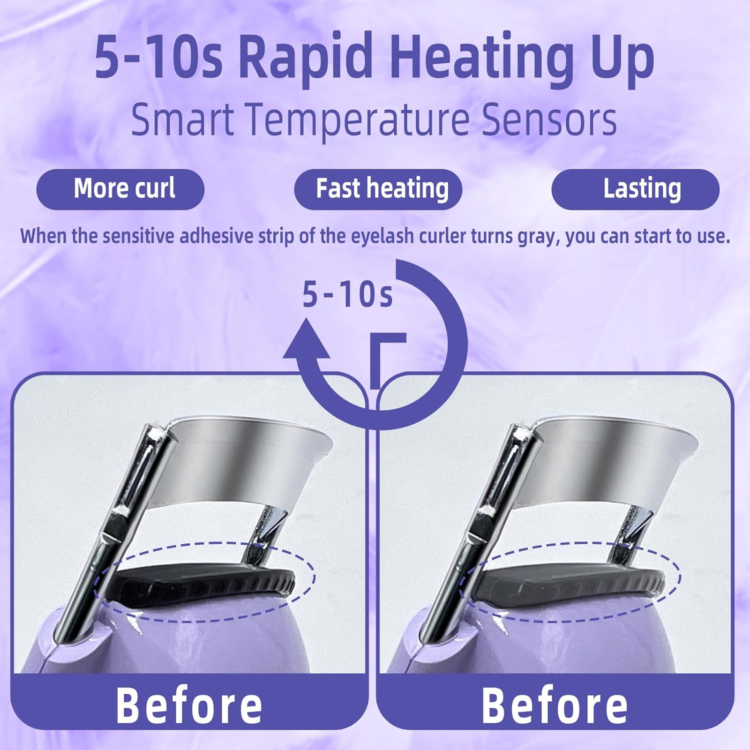 - Rechargeable Heated Curler:This heated lash curler is both reusable and USB rechargeable, featuring a quick and stable charge 230mAh battery that provide over 10 days of use on a full charge. With the included type-C cable, recharging the curler is easy and convenient, allowing you to power up directly from your wall adapter, laptop, or other devices.