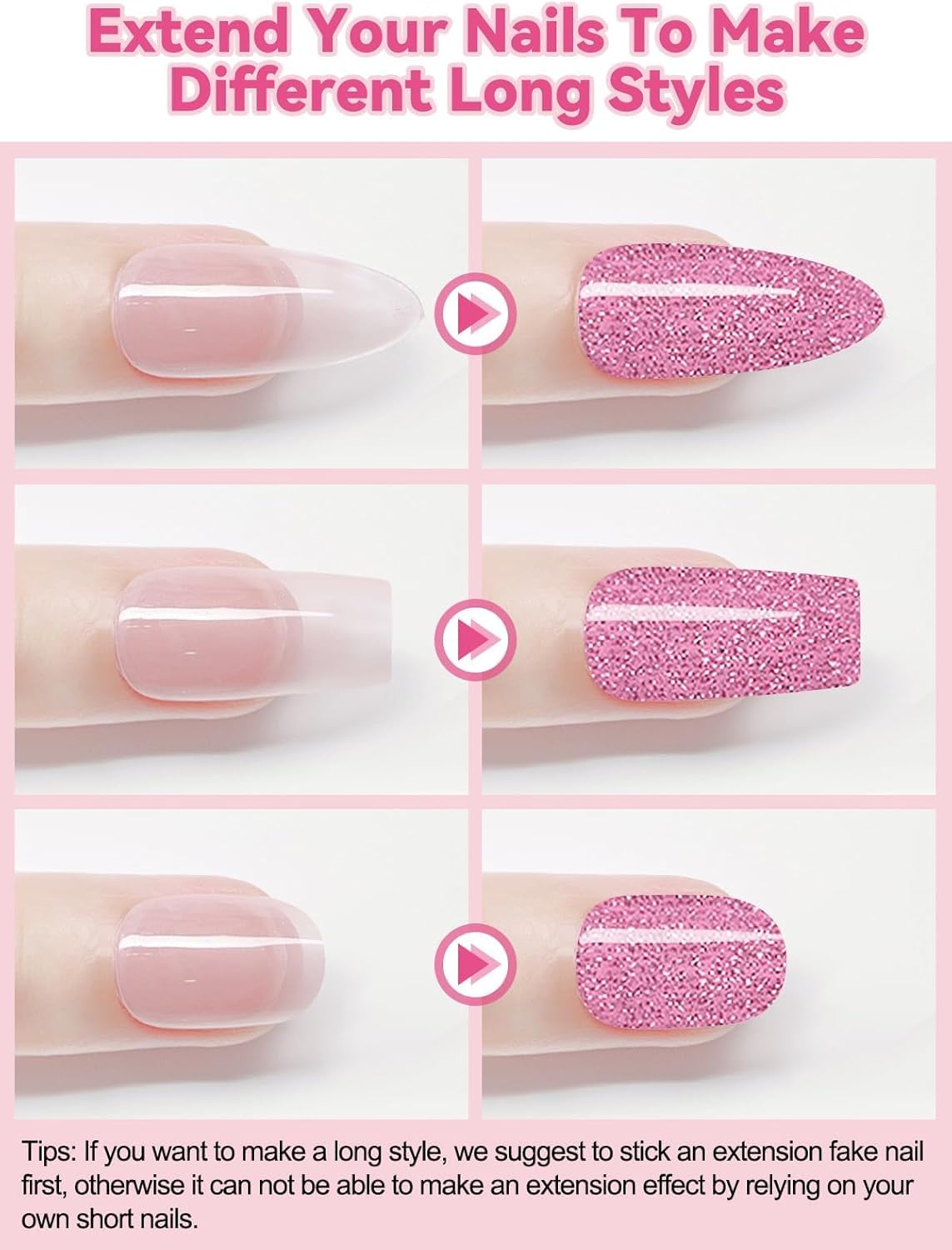 - Easy and Time Saving: More easy and convenient, 3 steps to easily finish a new nail polish style, Stickup, Filing, and light curing. They can last up to 3 weeks when fully cured by UV light. Easy to remove, just peel them off by wood stick. Note: UV/LED lamp Not include in items.