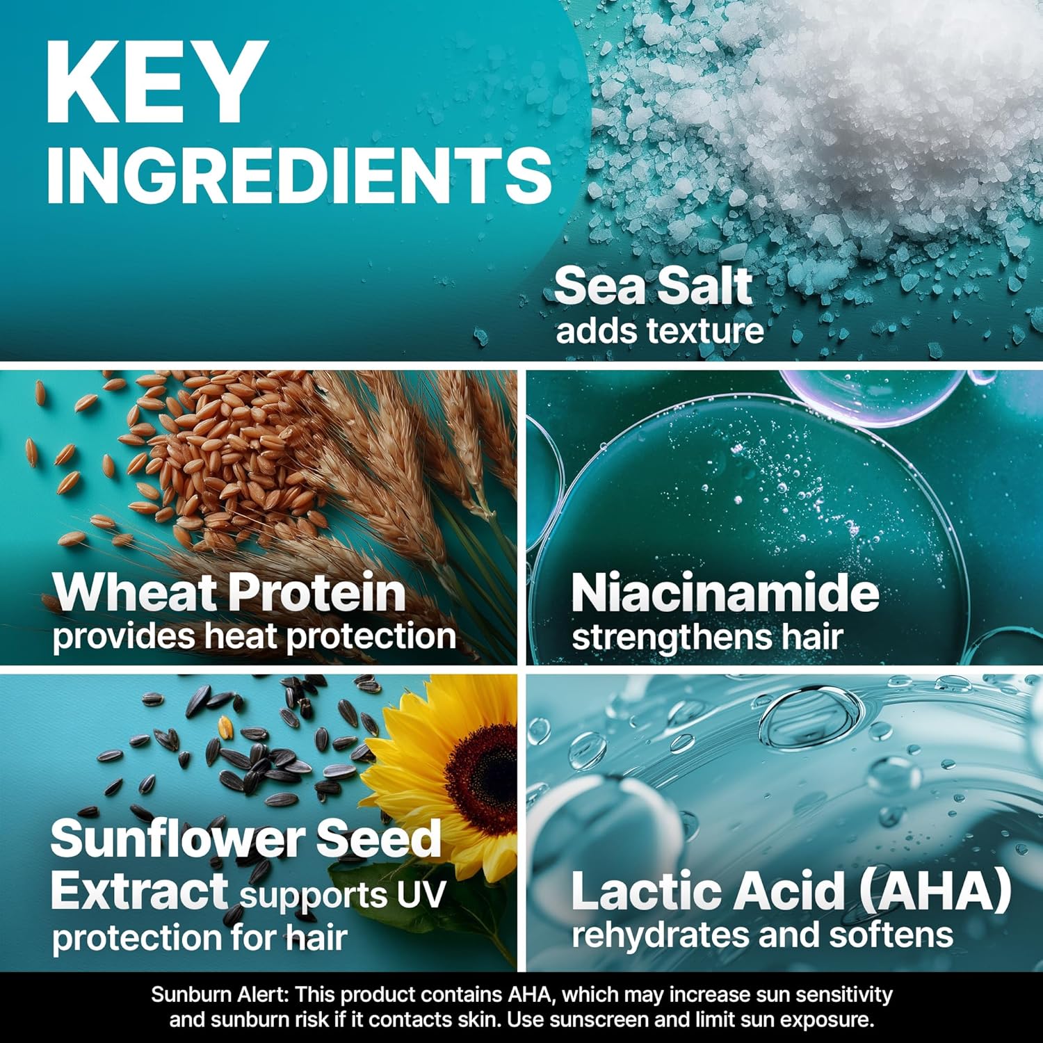 - FIRM TEXTURE β NO CRUNCHY FEEL: Forget stiff gels or crunchy hairsprays. Our sea salt texturizer provides a light hold with a natural matte finish, so hair stays touchably soft and moveable. Style stays in place without looking or feeling glued.