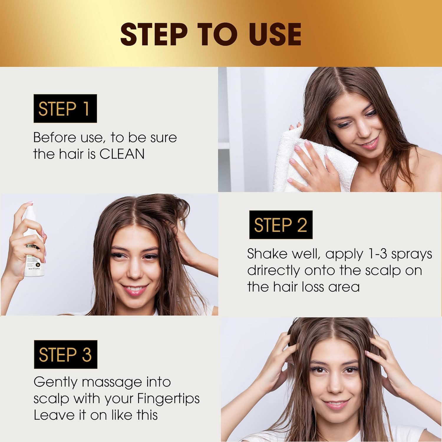 - Easy to Use: This hair care product is easy to incorporate into your daily routine, just apply to spray it on your scalp and massage it in. Frequently use, youβll see a clear improvement on your hair thickness and strength. Our hair product is no parabens, no sulfates, no alcohol - just pure, effective ingredients for hair growth.