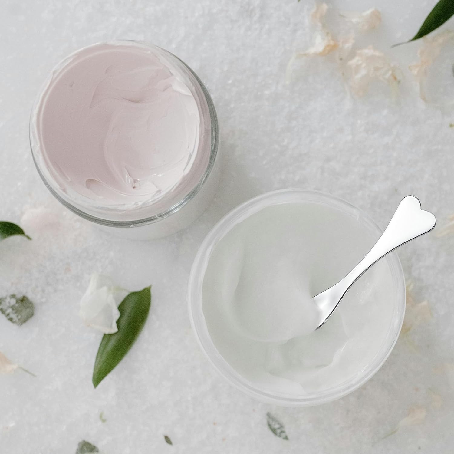 Aswewamt 6Pcs Mini Metal Makeup Spatula Facial Massage Scoop Heart-shaped Skincare Spatula Silver Cream Dig Beauty Spoons Reusable Cosmetic Applicator for Mixing and Sampling Face Mask Cream Lotions