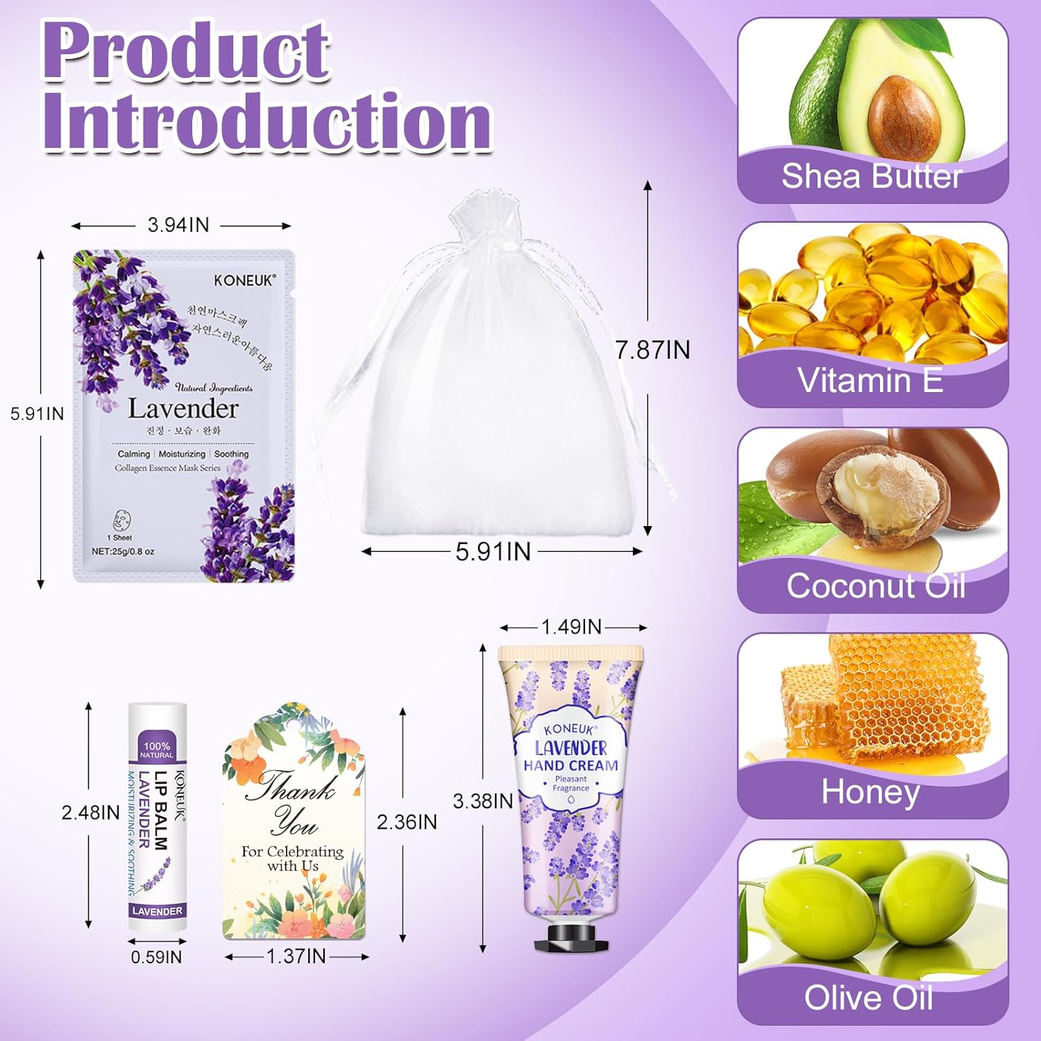 - 【60 Sets Bulk Thank You Gifts】This thank gifts set includes 60pcs lip balms with 6 scents,60pcs hand cream with 6 scents,60pcs facial mask with 6 scents,60pcs organza gift bags,60pcs thank you cards and 1pcs operation instruction.DIY exquisite gift sets and ample quantity,thank you to the guests who celebrate with you