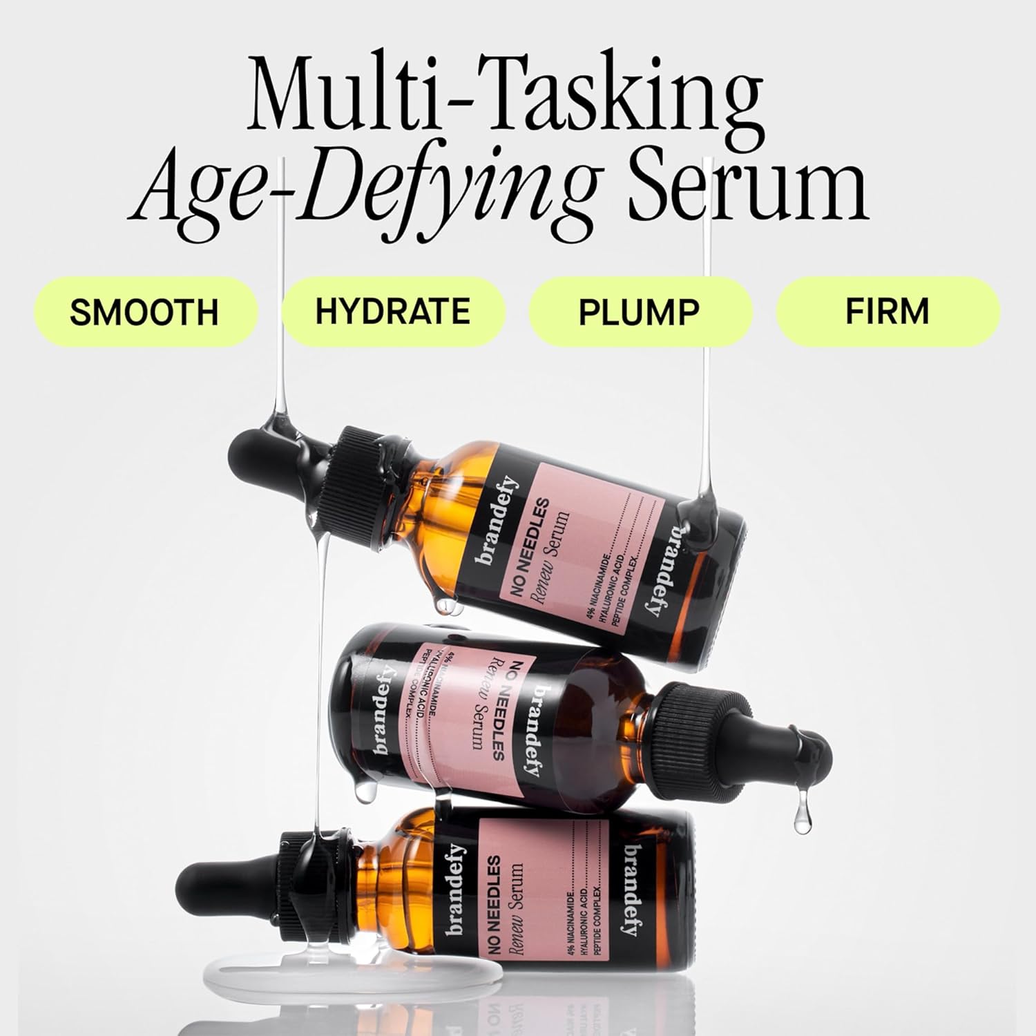 Brandefy No Needles - Niacinamide Serum, Peptides and Hyaluronic Acid. Hydrating & Plumping Serum for Bright, Smooth, Firm & Dewy Skin, 1oz, Made In The US
