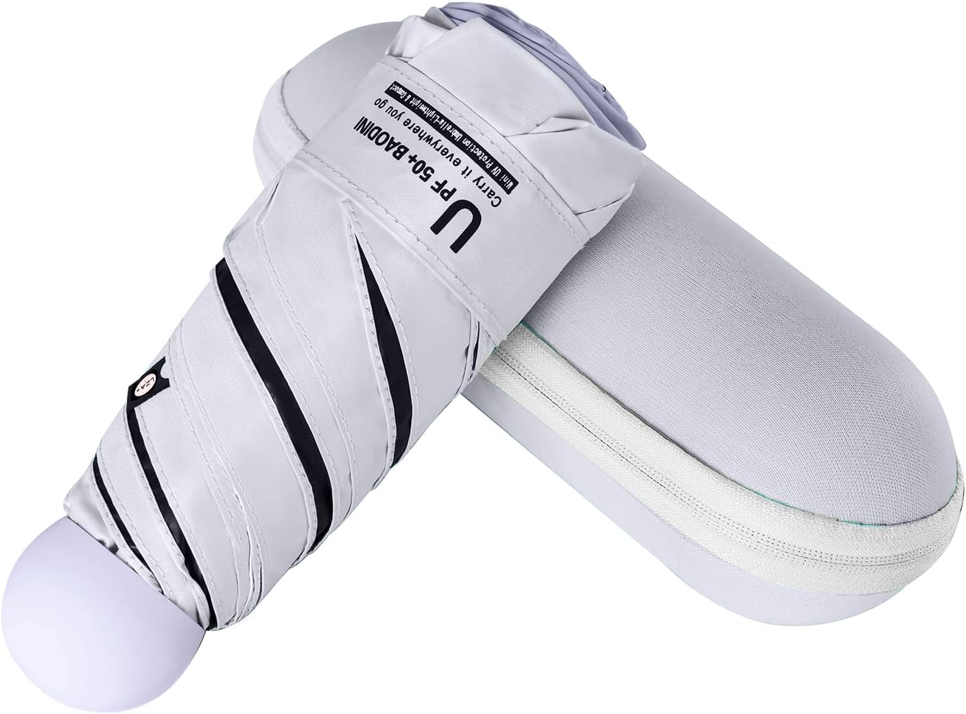 BAODINI Travel Mini Umbrella for Purse With Case Small Compact UV Sun Protection Sun Lightweight Tiny Pocket Umbrella for Women Kids and Men