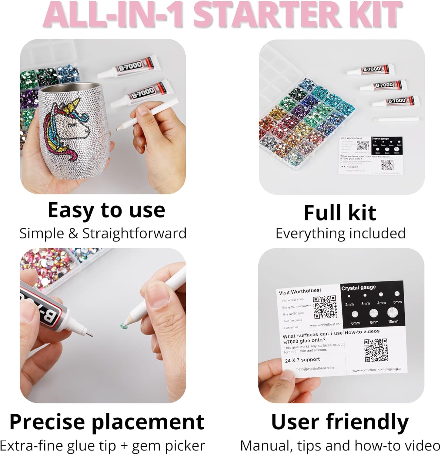 - Easy to Use -- This kit is designed to be straightforward, and versatile for various crafting projects. The manual is user-friendly and beneficial for both novice and experienced crafters. The complete and durable tools are suitable for precisely applying rhinestones to create intricate designs, with no additional tools required. Rhinestones are easy to apply and remove. The sturdy container with 15 grids keeps all rhinestones organized by size and color, making them easy to store and access