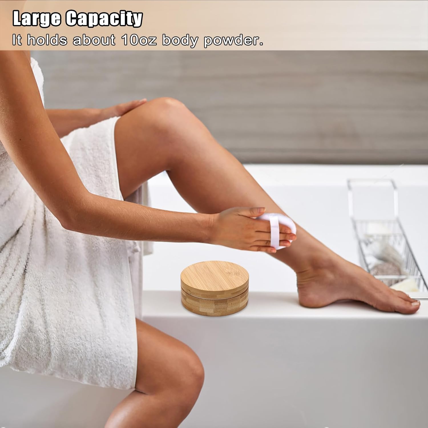 - 【Our Service】If you have any problems with this bamboo powder travel container, please do not hesitate to contact us, we will refund you or free replace new one for you .Packing included: 1x Body Powder Container with 2pcs Powder Puffs (Accessories are not included.)