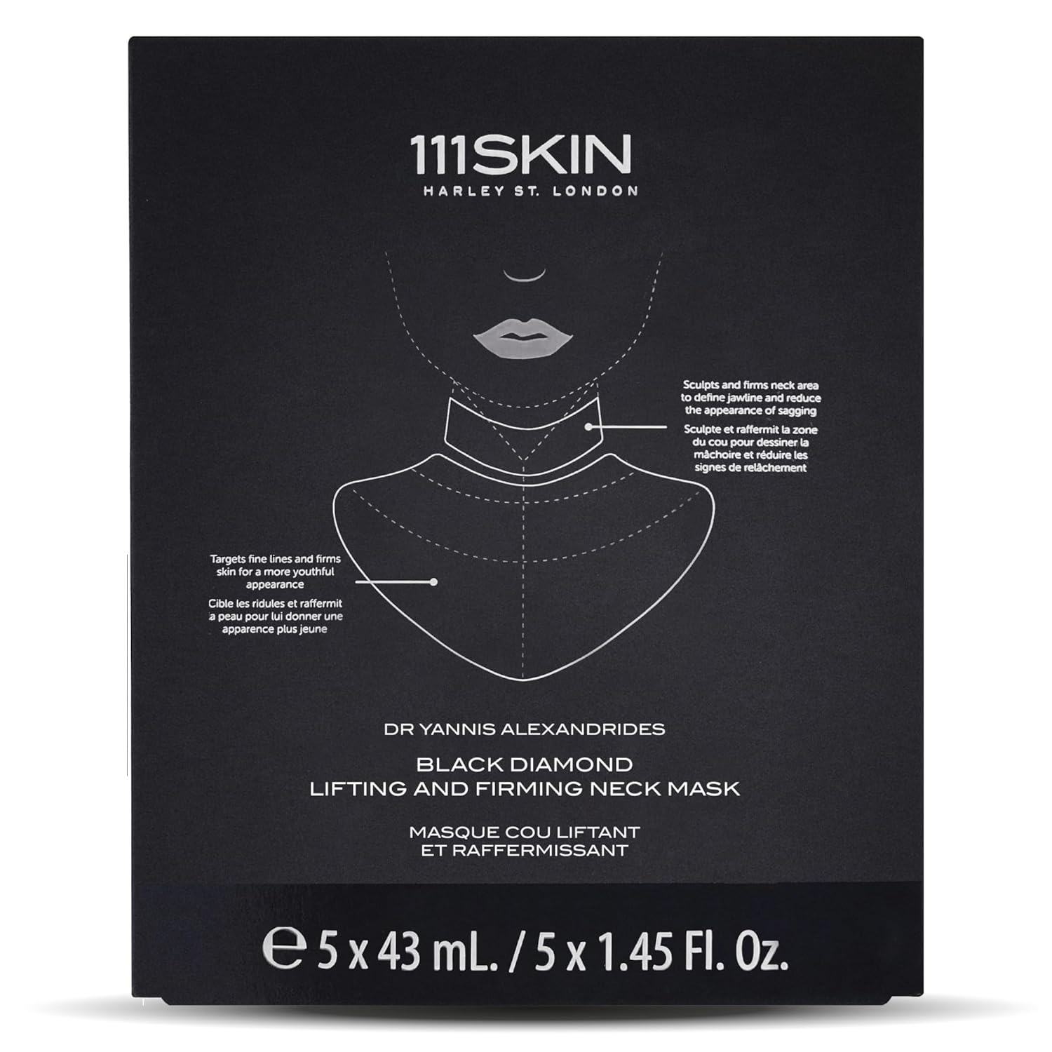 111SKIN Black Diamond Lifting & Firming Neck Mask, Hydrogel Neck Wrinkle Masks for Fine Lines & Sagging Skin on Chest & Décolletage with Peptide & Niacinamide, 5 Sheet Masks (1.45 fl oz Each)