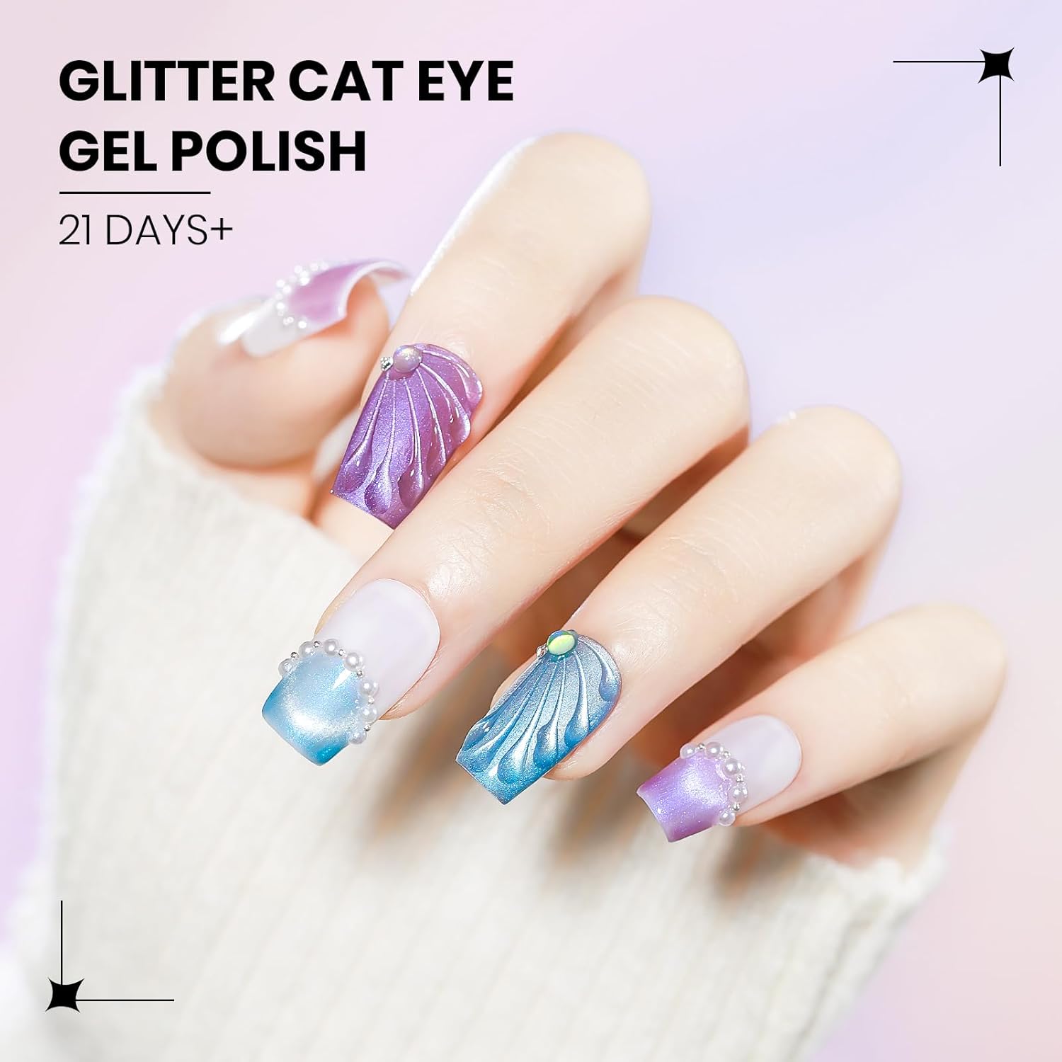 Aurora Magnetic Cat Eye Gel Nail Polish 12 Colors Mermaid Shimmer Glitter Cateye Gel Polish Spring Summer Colors Cat Eye Manicure Gift Soak Off Lamp Salon DIY at Home