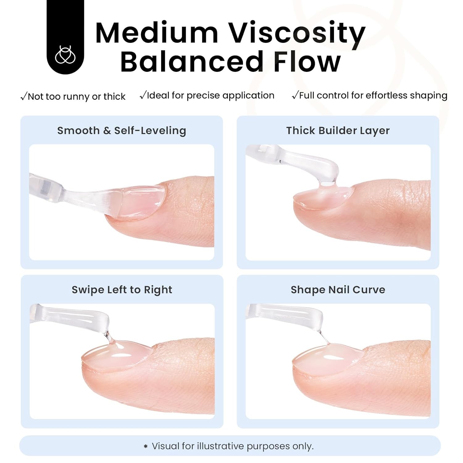 - Beginner-Friendly Self Leveling:This strengthening nail gel heas easy-to-control gel flows naturally for smooth application. Flip your finger to form a natural apex, then cure under UV&LED lamp for 60β120s