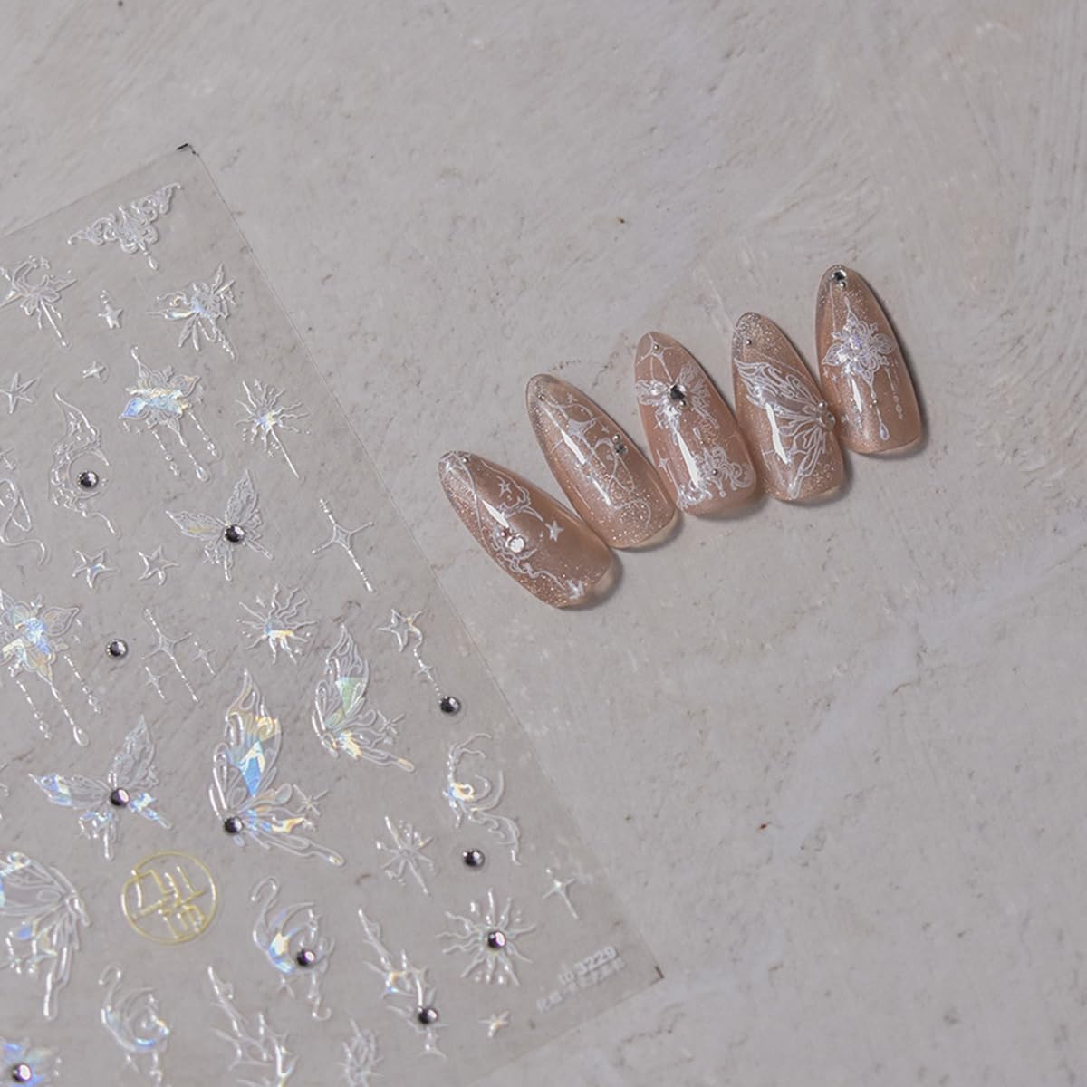 Butterfly Nail Art Stickers Silver Butterfly Nail Stickers 5D Embossed Nail Decals Accessories Glitter Sparkly Adhesive Slider Manicure Supplies for Women DIY Decorations