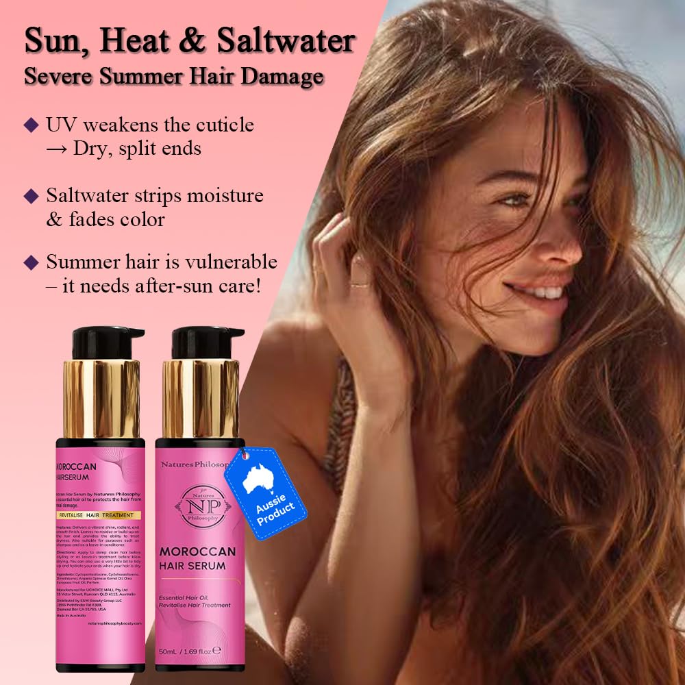 NP NATURES PHILOSOPHY Moroccan Argan Oil - Hair Serum Organic, Anti-Frizz, Repairs Damaged Hair, Adds Shine for All Hair Types Aussie Allergy-Free Moroccan Oil Hair Products 1.69 Fl oz