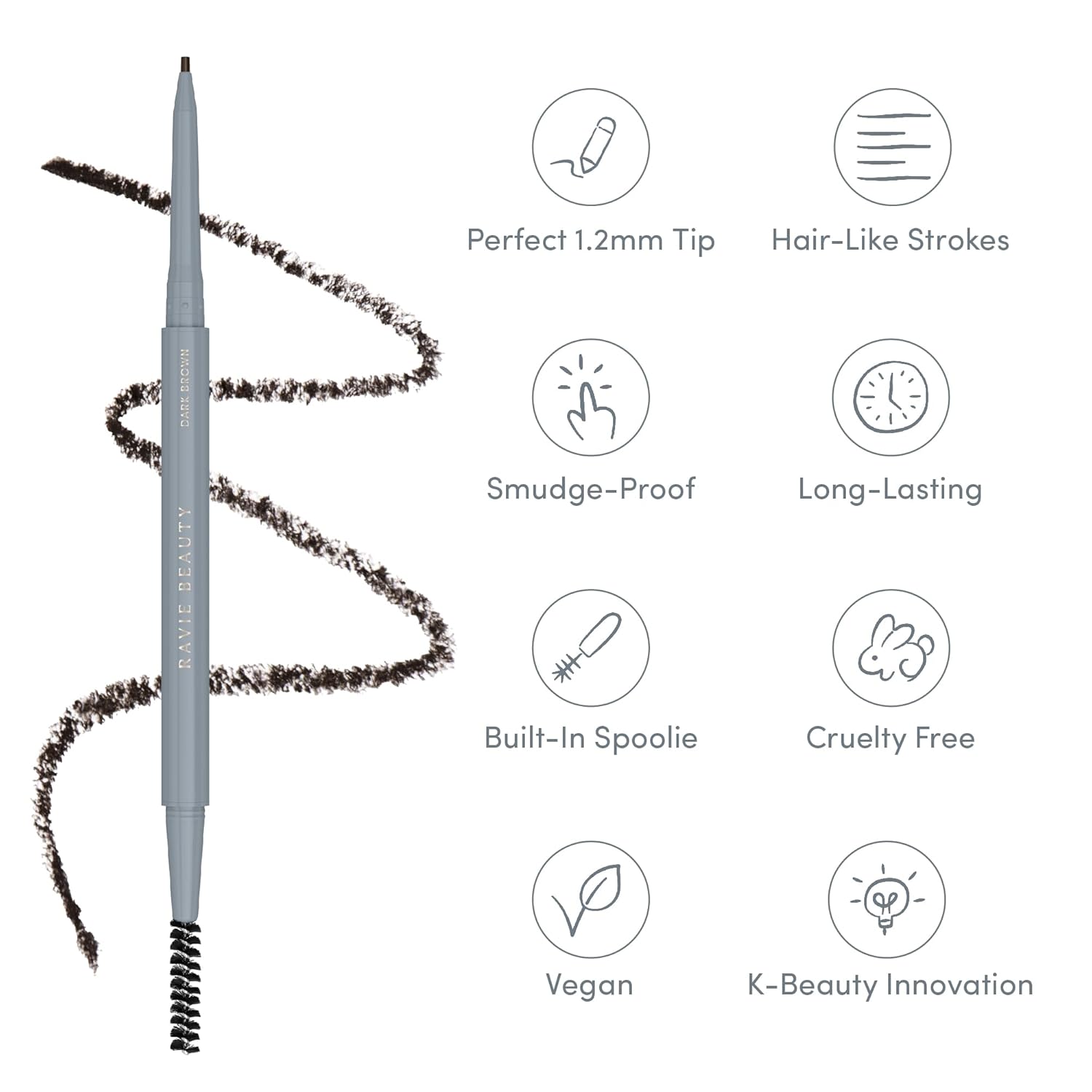 - FOOLPROOF FOR ROOKIES & PROS ALIKE: Classic meets modern innovation smooth application eliminates guesswork. Whether you're a beginner or beauty expert, achieve that timeless, polished brow look with today's speed and convenience every time with Ravie Beauty's eyebrow pencils.