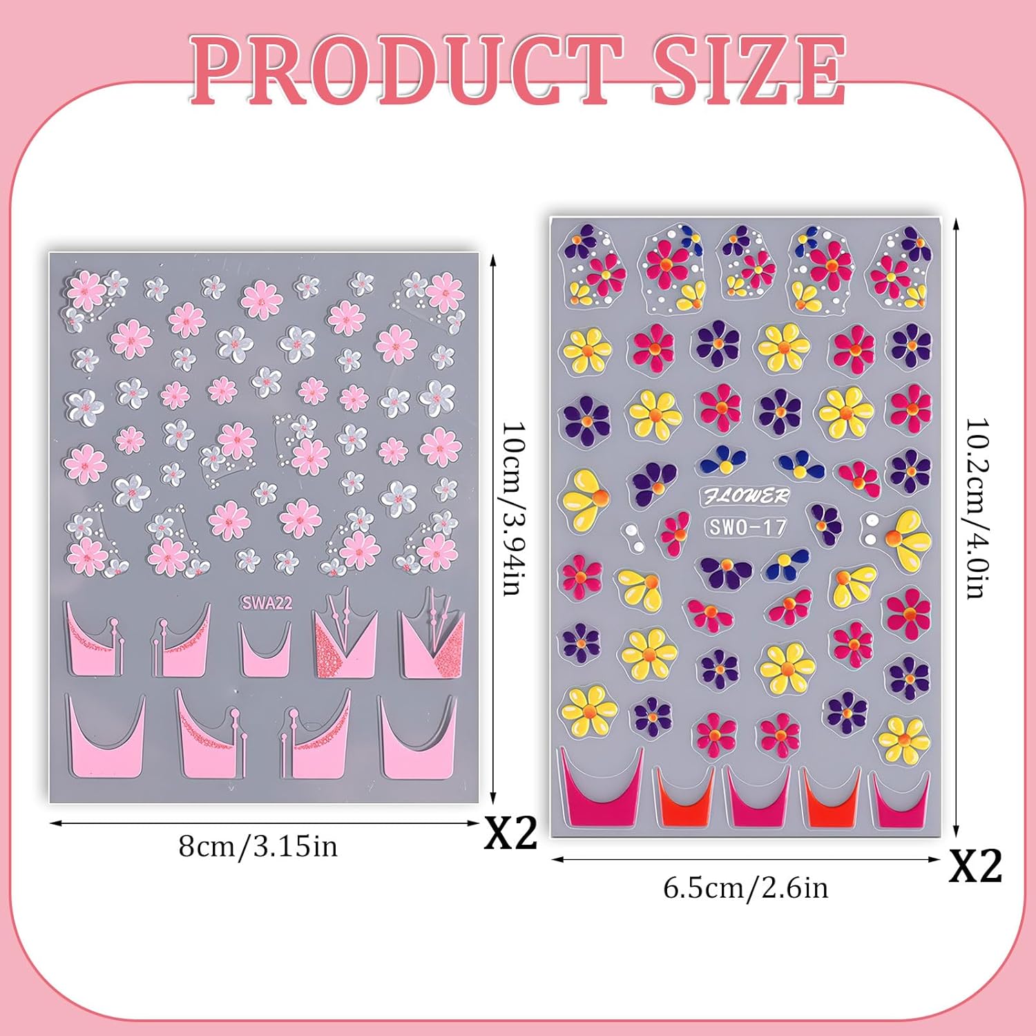 - 【Safety Materials】 Our flower nail decals are made of safe and environment-friendly materials, non-toxic, not limited to any skin, and safe to use. You can design your own unique nail effect.