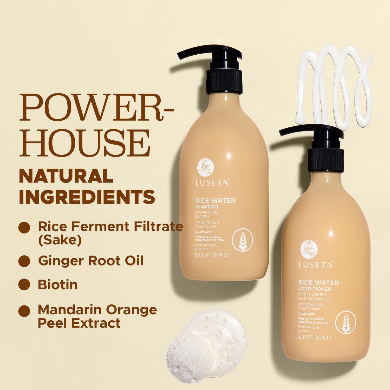 Luseta Rice Water Shampoo and conditioner Set Strengthening & Nourishing Revitalizes Shine for All Hair Types Hydrating & Frizz Control for Women and Men 33.8oz*2