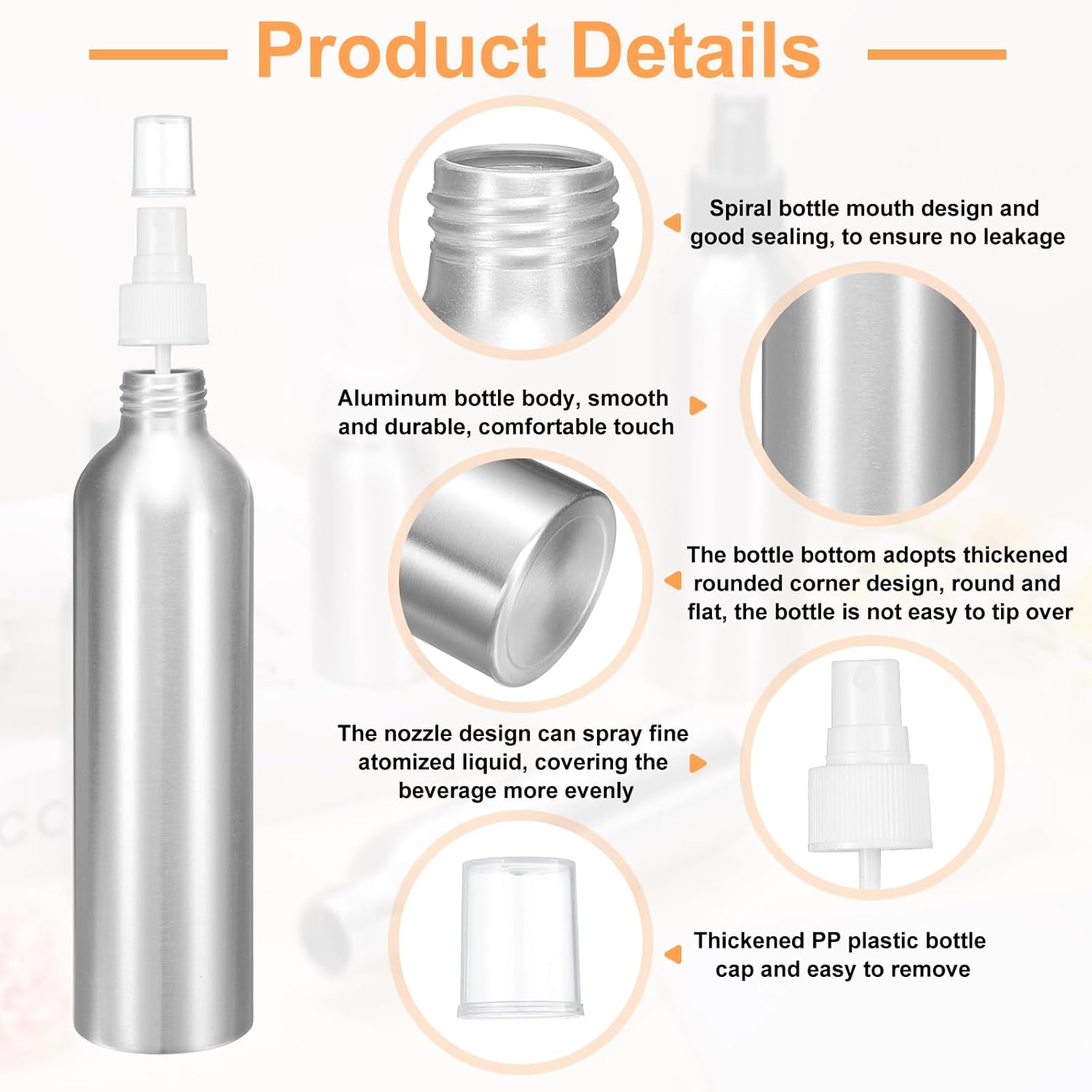 HARFINGTON 5pcs Aluminum Fine Mist Spray Bottles 250ml/8.5oz Metal Small Liquid Alcohol Refillable Travel Container with White Plastic Nozzle Cap for Perfume Skincare Cosmetic Storage Bottle