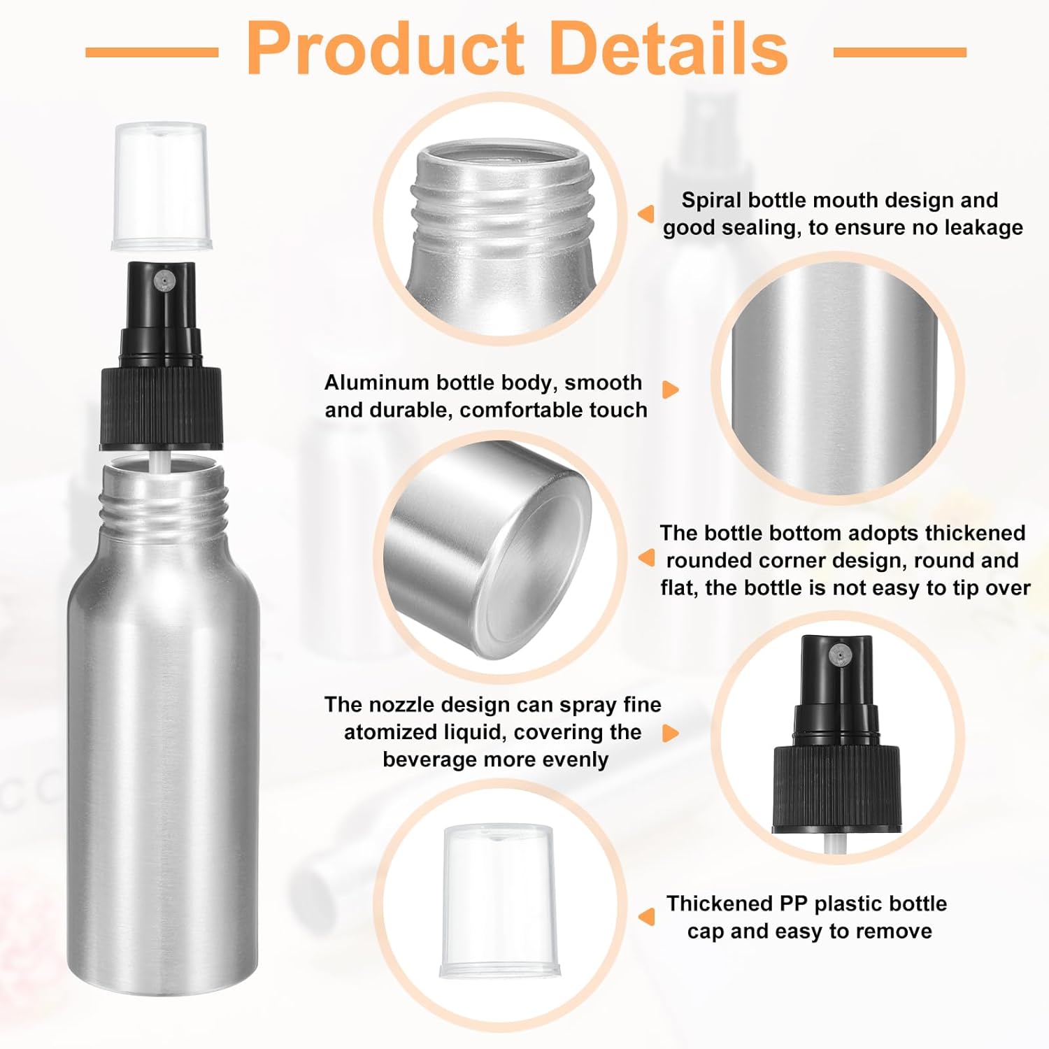- Applications - This metal refillable container is widely used in kitchens, bathrooms, offices, travel vacations, etc., and can be used to store floral water, perfume, spray, essential oils, air freshener, toner, etc