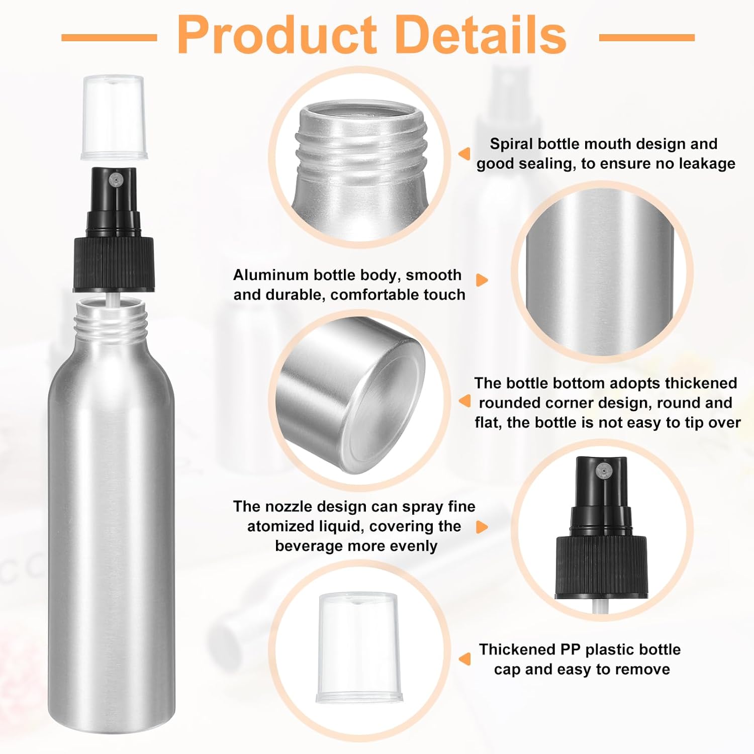 HARFINGTON 5pcs Aluminum Fine Mist Spray Bottles 120ml/4oz Metal Small Liquid Alcohol Refillable Travel Container with Black Plastic Nozzle Cap for Perfume Skincare Cosmetic Storage Bottle