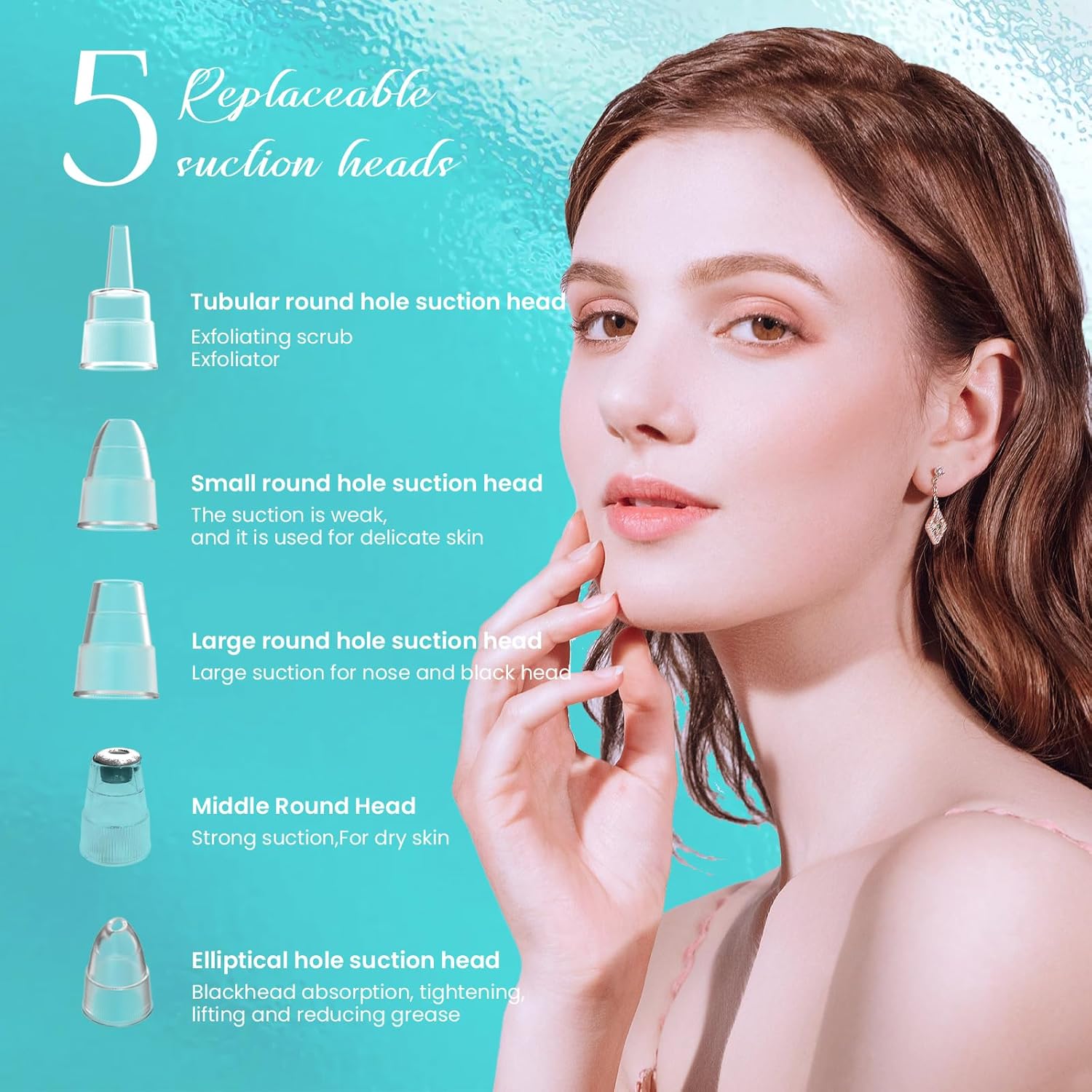 - 【 Safe & Effective 】–Blackhead pore vacuum uses innovative vacuum technology, the pore vacuum suction is twice that of ordinary products. Made of eco-friendly material ABS, non-toxic, non-irritating, which can be safely used on the face. Blackhead remover vacuum uses effective physical approach to solve the skin problems without any chemicals.