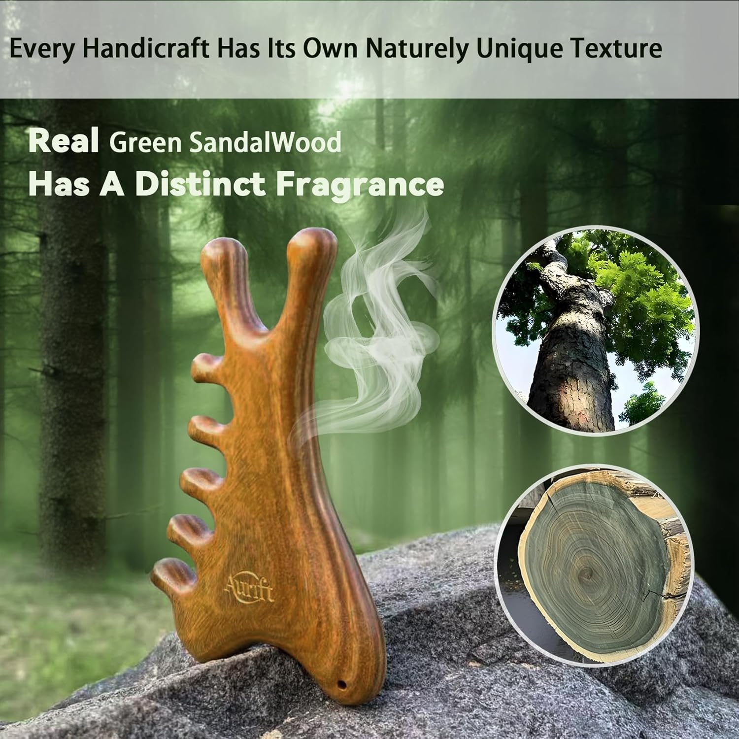 4-in-1 Gua Sha Tool for Face & Body, Natural Green Sandalwood โ Lymphatic Drainage, Jaw Lifting & Nose Sculpting, Head Massage Comb for Stress Relief, Home Office Self Care Gifts for Mom Girl Friend