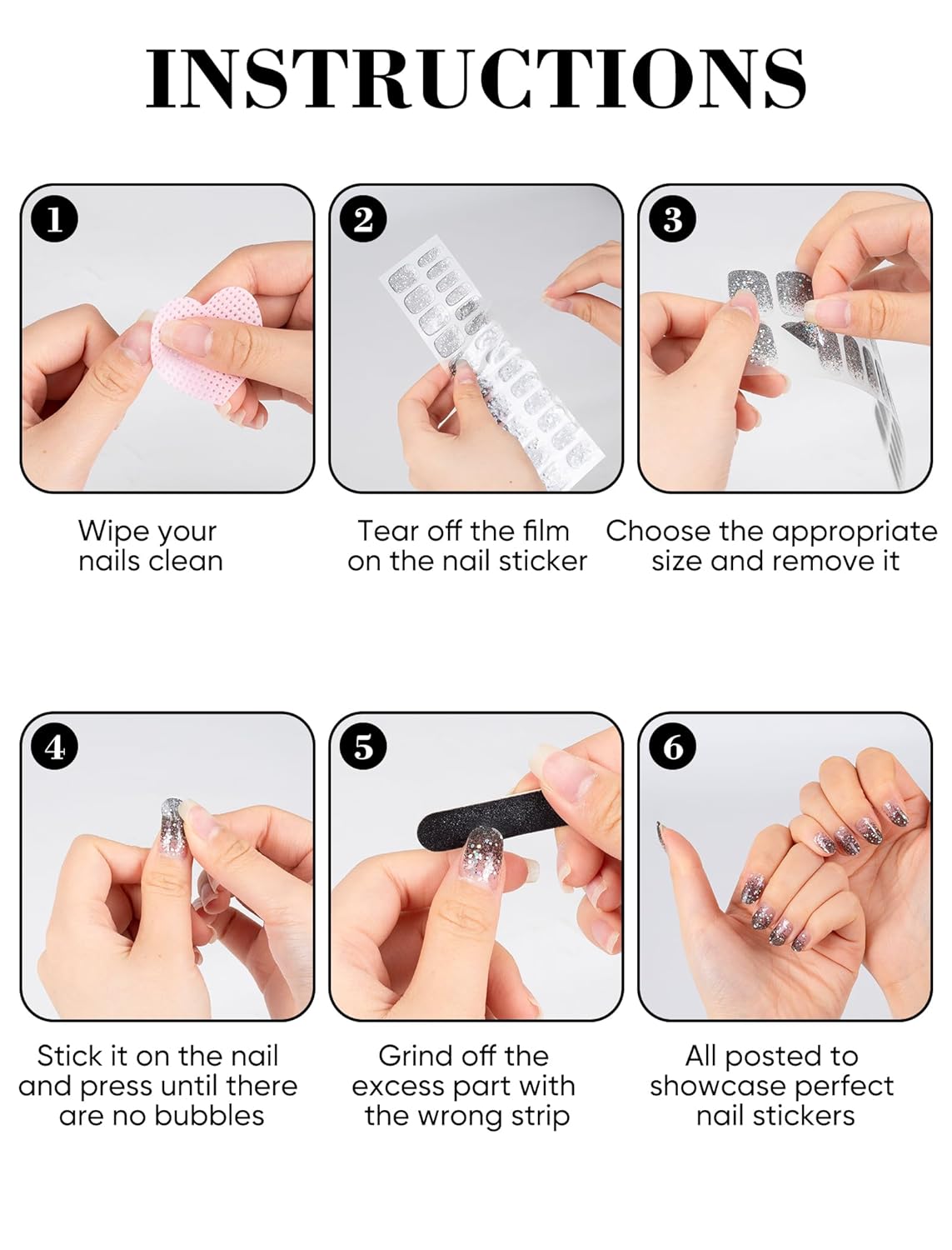 - Easy Application & Removal: No need to buff or polish your nails before application. Simply clean your nails using the provided tools, apply the nail strips, and shape them with the included nail file. Removing them is just as easyโjust peel them off without soaking