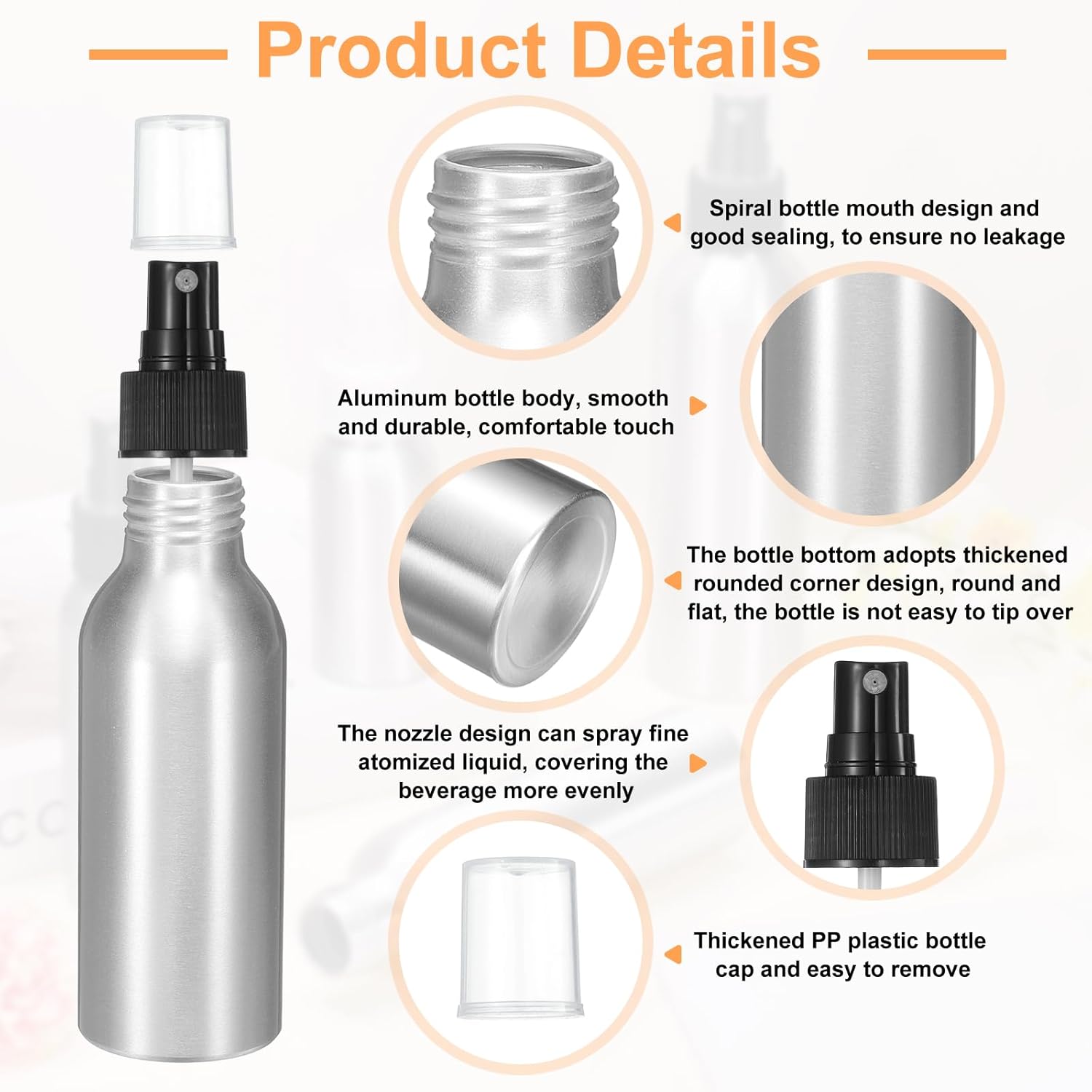 HARFINGTON 5pcs Aluminum Fine Mist Spray Bottles 100ml/3.4oz Metal Small Liquid Alcohol Refillable Travel Container with Black Plastic Nozzle Cap for Perfume Skincare Cosmetic Storage Bottle