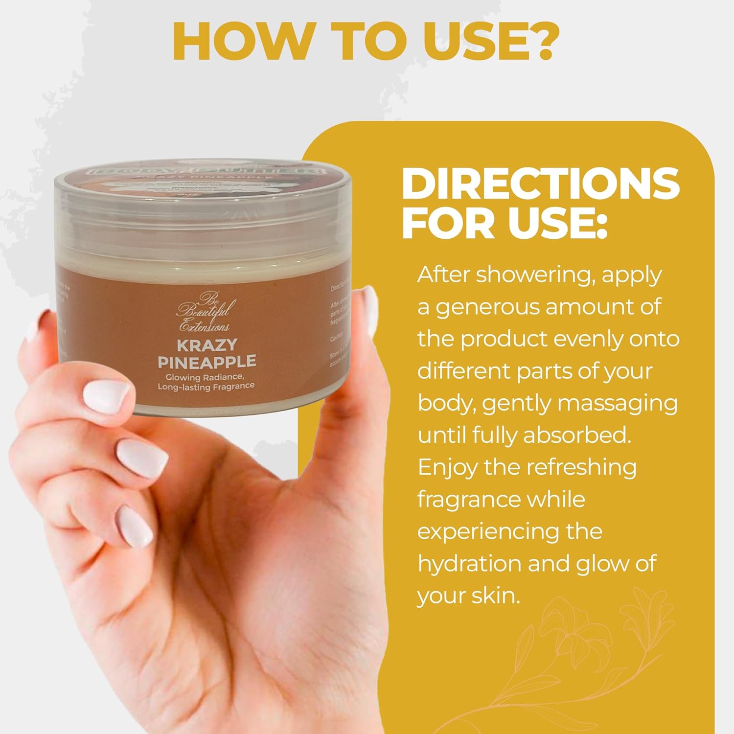 body butter krazy pineapple scent long -lasting fragrance,hydrate skin jojoba oil and more 8oz