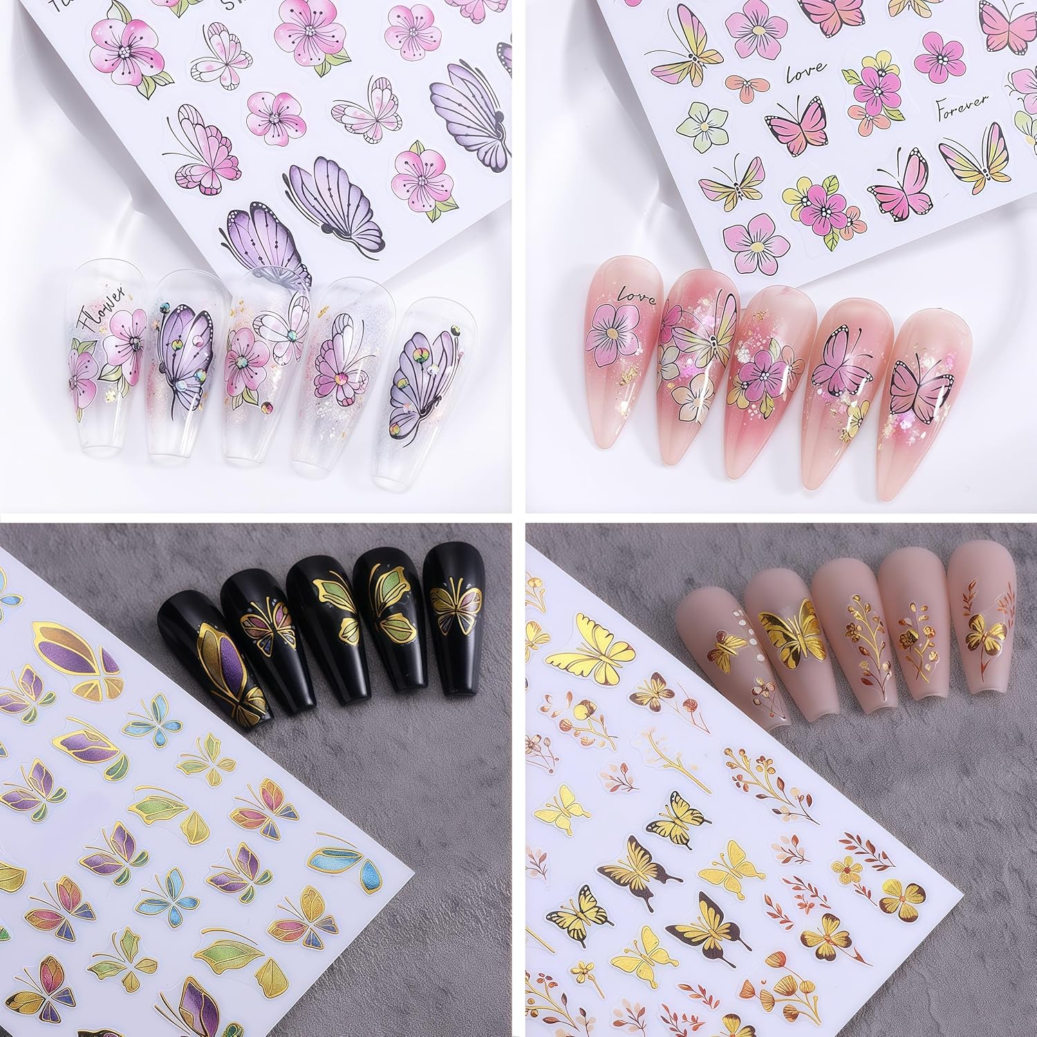 - Colorful Butterfly Self-adhesive Design: 3D cute nail decals for nail art design is simple and quick to use, nail stickers work great on bare nails, they will stay on for a long time and will not peel off your nails, enjoy the feeling of nail art