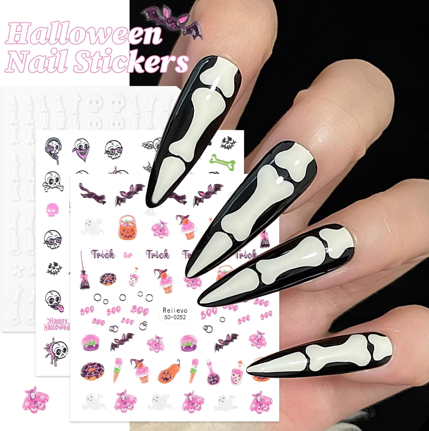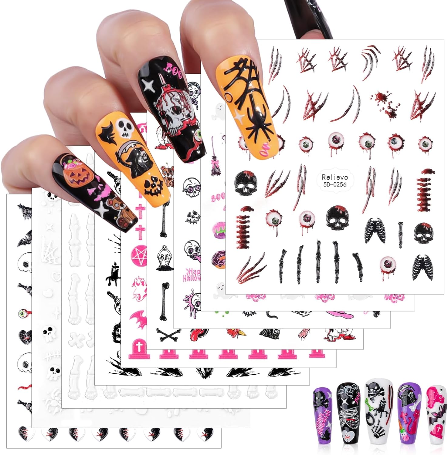 - ๐ Easy-to-Use Halloween nail supplies: Thanks to the self-adhesive backing, you donโt need any glue. Just tear off your favorite pattern, stick 5D stickers on your nails, and press gently for a few seconds. Thatโs all it takes to get unique, beautiful, professional-looking nail art.