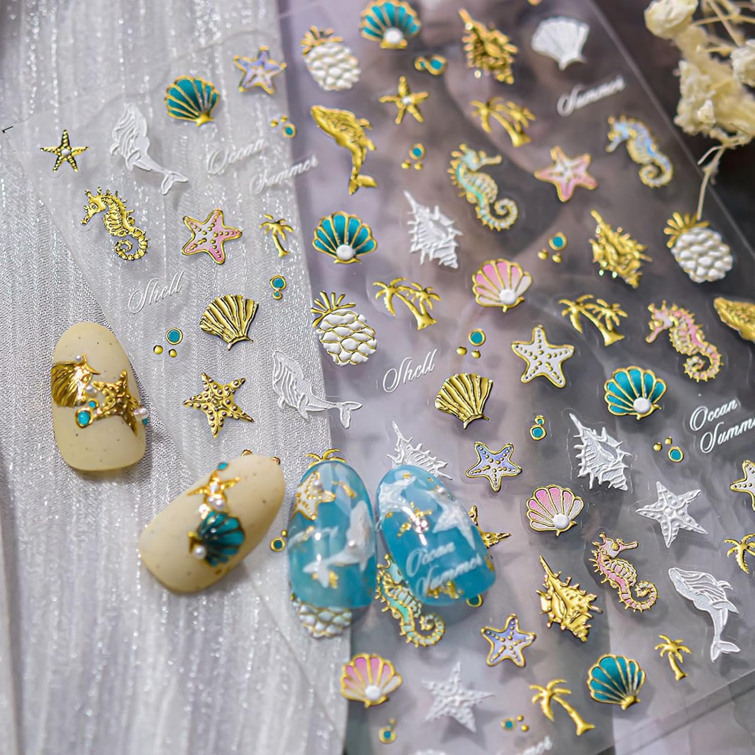 - Beautiful Design:5D seashell nail decals made from environmentally friendly material, the pattern is clear and beautiful,suitable for nail artists, nail enthusiast as well as women of all ages