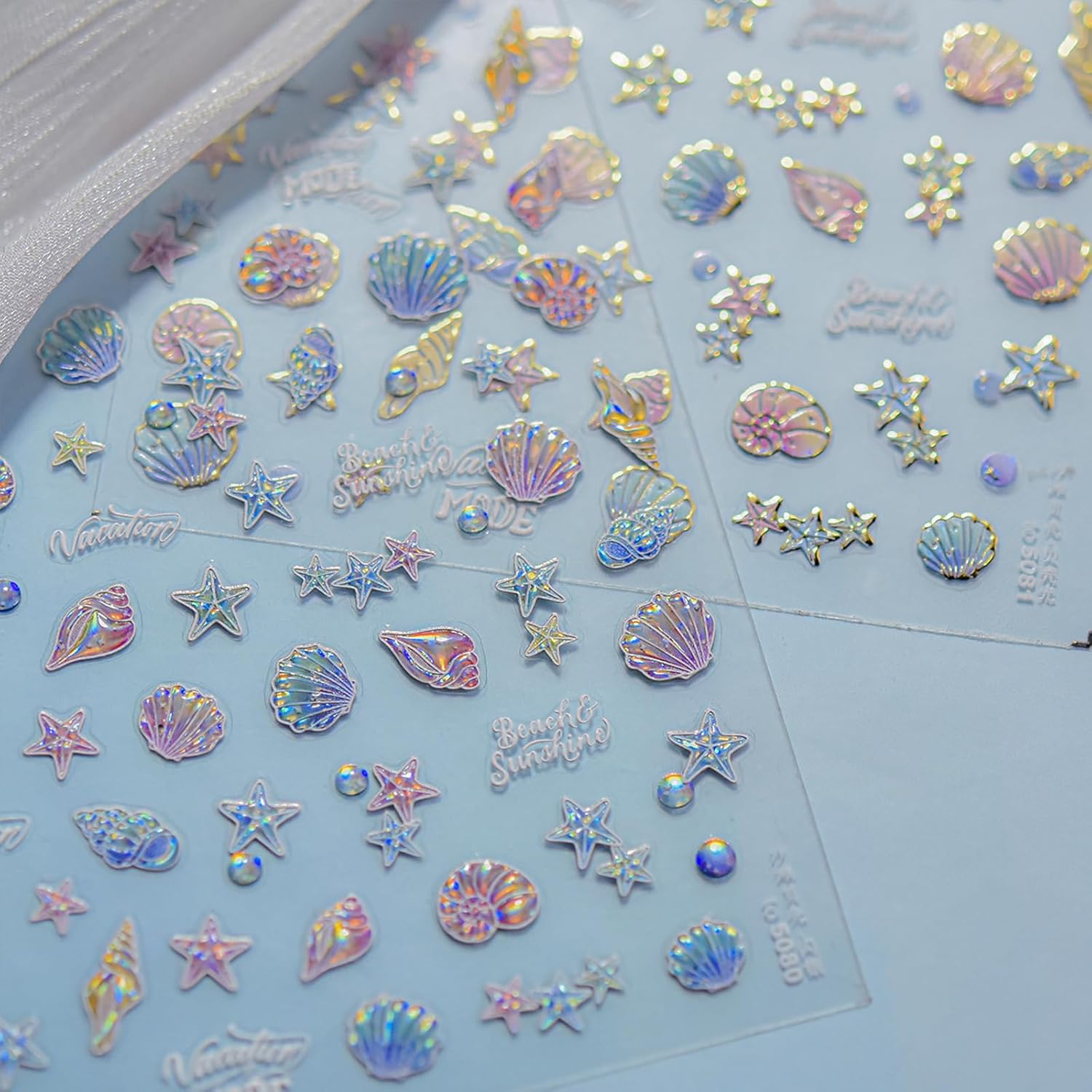 - Beautiful Design: 5D seashell nail decals made from environmentally friendly material, the pattern is clear and beautiful,suitable for nail artists, nail enthusiast as well as women of all ages