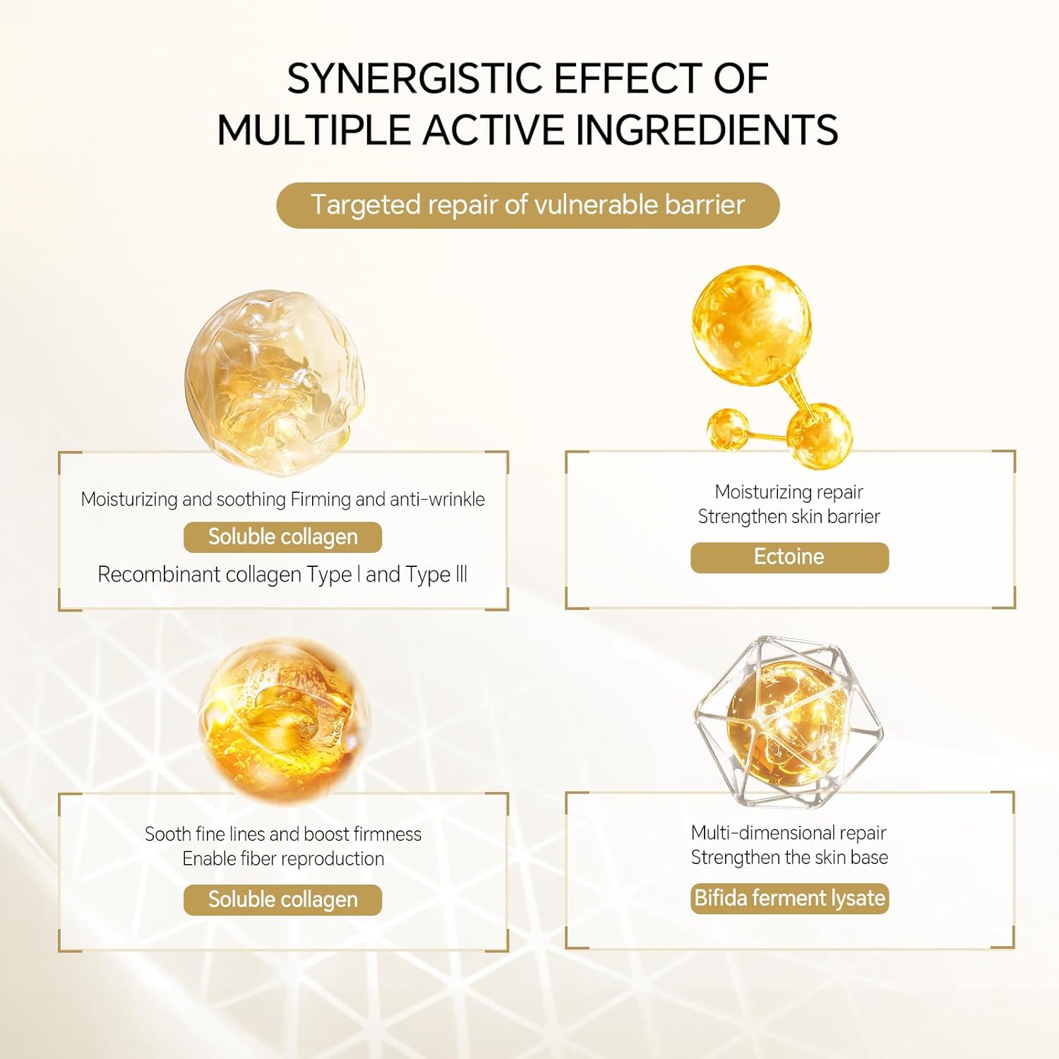 - 💧 Deep Hydration & Barrier Shield: Recombinant Collagen (Type I+III) + Ectoin intensely replenish moisture while sealing it in, visibly plumping thin/post-laser skin and reducing fine lines.
