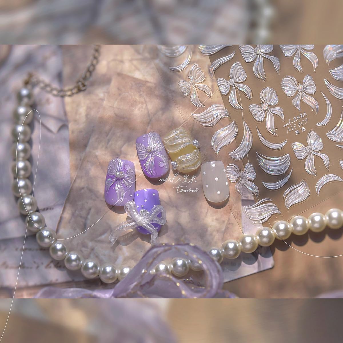 - Fashion Nail Designs:There 5D bow nail decals,large number of different color for you to use and replace in daily life, nail decals are full of sensuality and elegance,Various charming patterns bring you a different mood