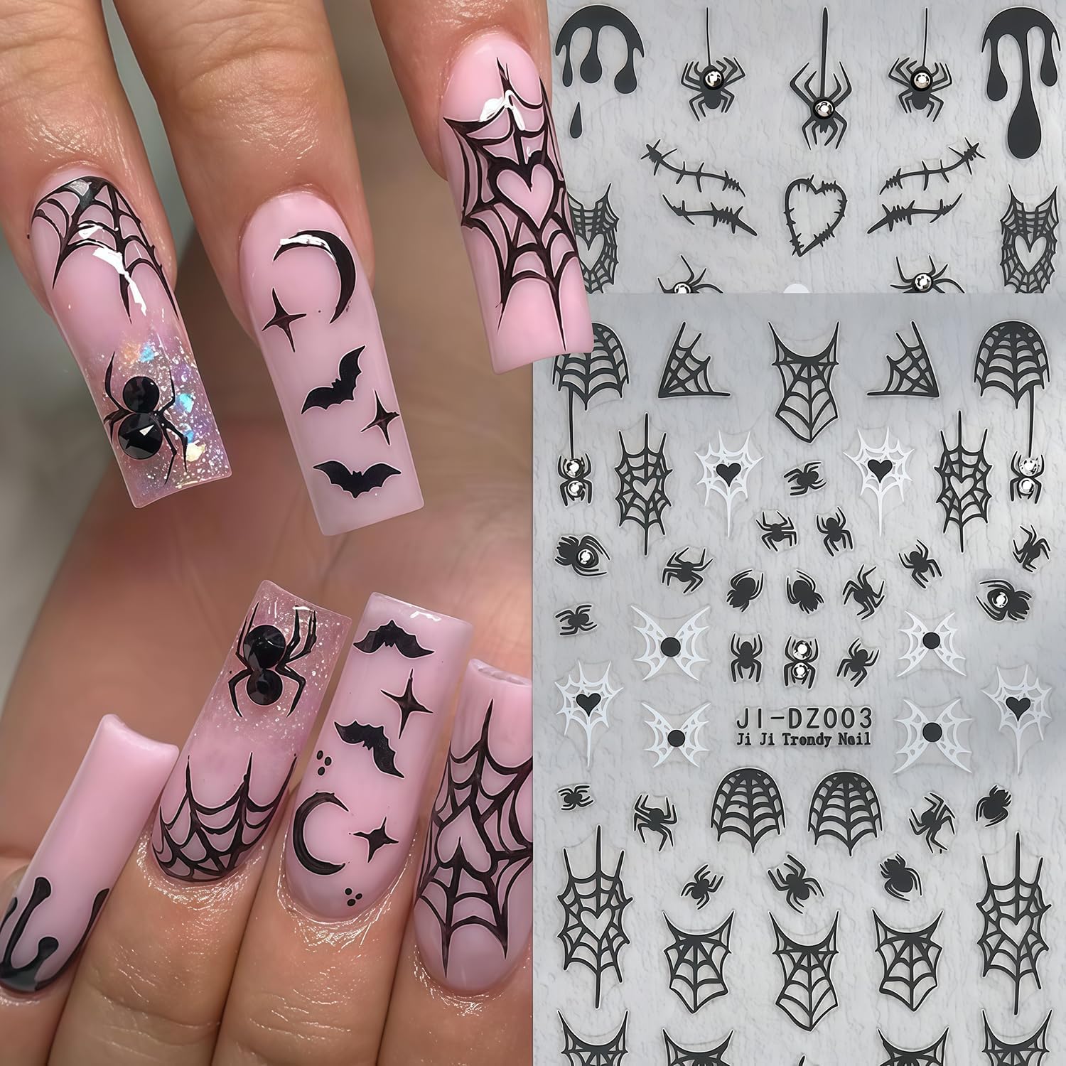 - Quantity: You will get 4 sheets of ghost nail art stickers, including ghost, spider web, spider web pattern designs, not easy to fall off or fade, can easily create a variety of themed nail art, meet the needs of reusable