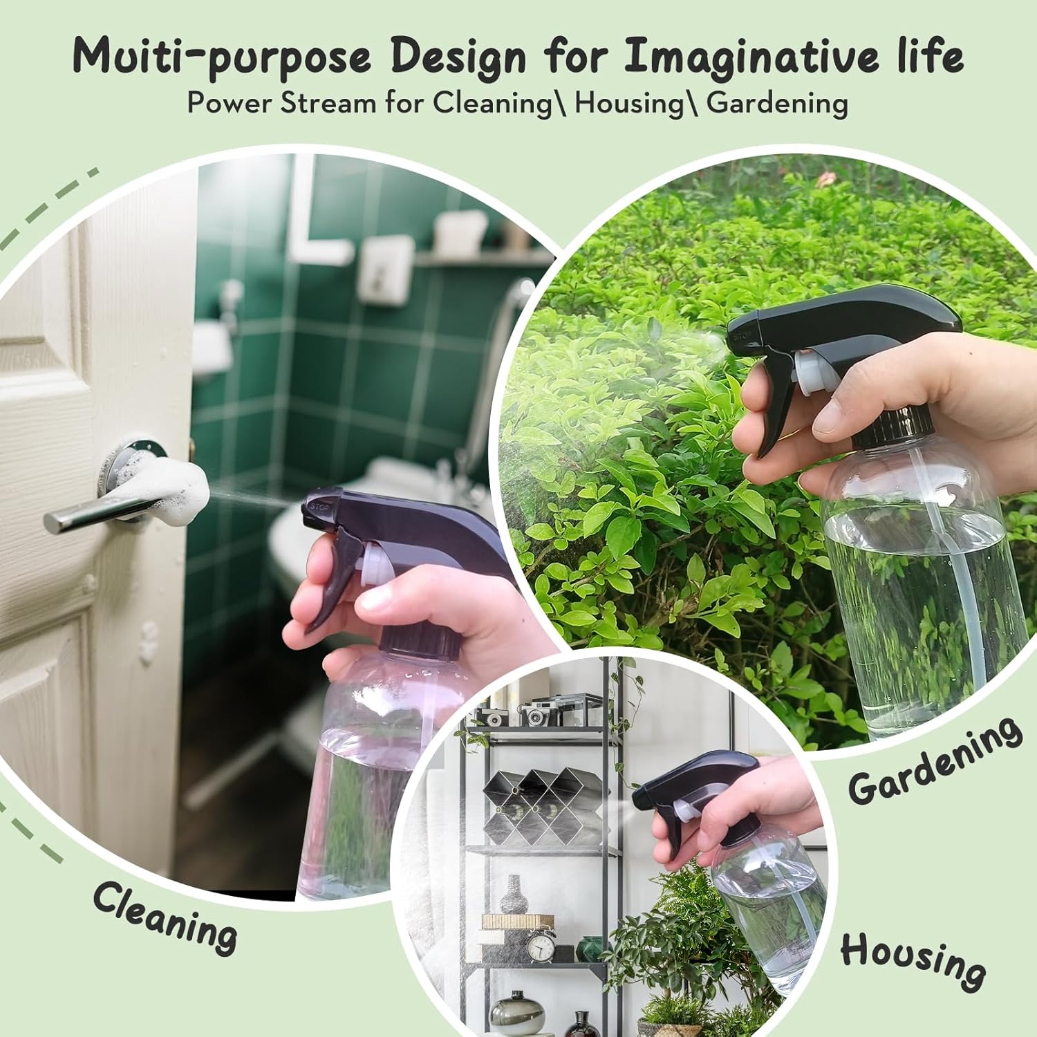 - 【Application】Spray Bottles are suitable for cleaning solutions, watering plants, grooming pets, and culinary uses in the kitchen