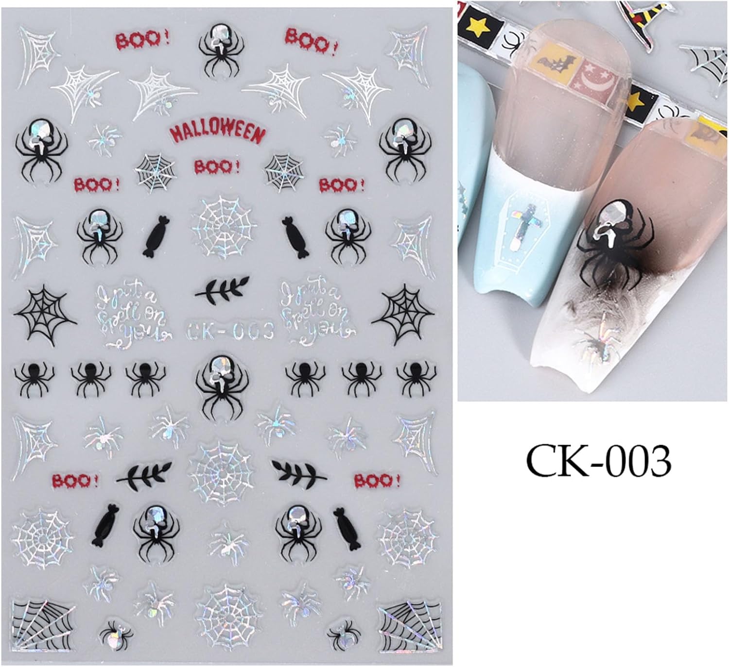 6Pcs Halloween Nail Stickers for Nail Art Cute Ghost Pumpkin Nail Art Stickers Spider Web Skeleton Bat Nails Design Decals Halloween Nail Supplies for Women Girls DIY Manicure