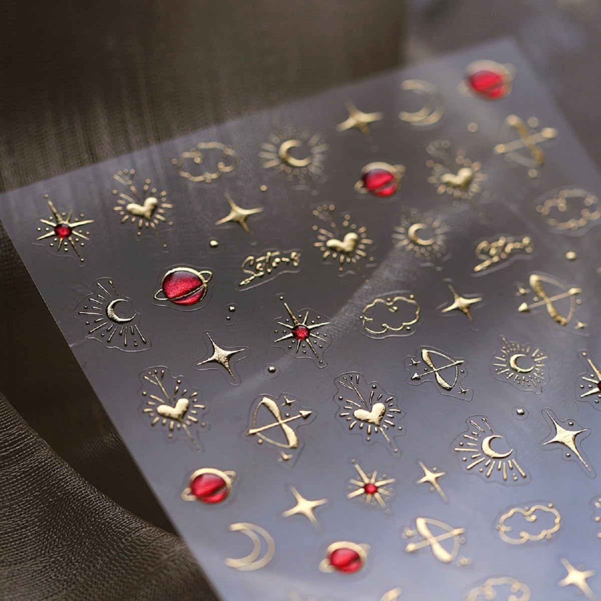 - Star Nail Art Decals:1 sheets of star nail stickers give you an advanced exquisite feeling.Gold heart elements nail decals, bright color and beautiful patterns designs, adding a touch of magic to any manicure
