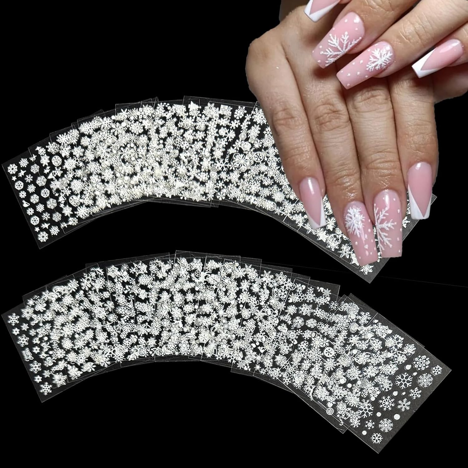 - Snowflake Nail Art Stickers: You will get 30 styles white nail decals in one set of different snowmen Santa Claus and elk shapes nail stickers, satisfy all your love for beautiful nails, a variety of elements for you to choose from to DIY your own nail art designs.