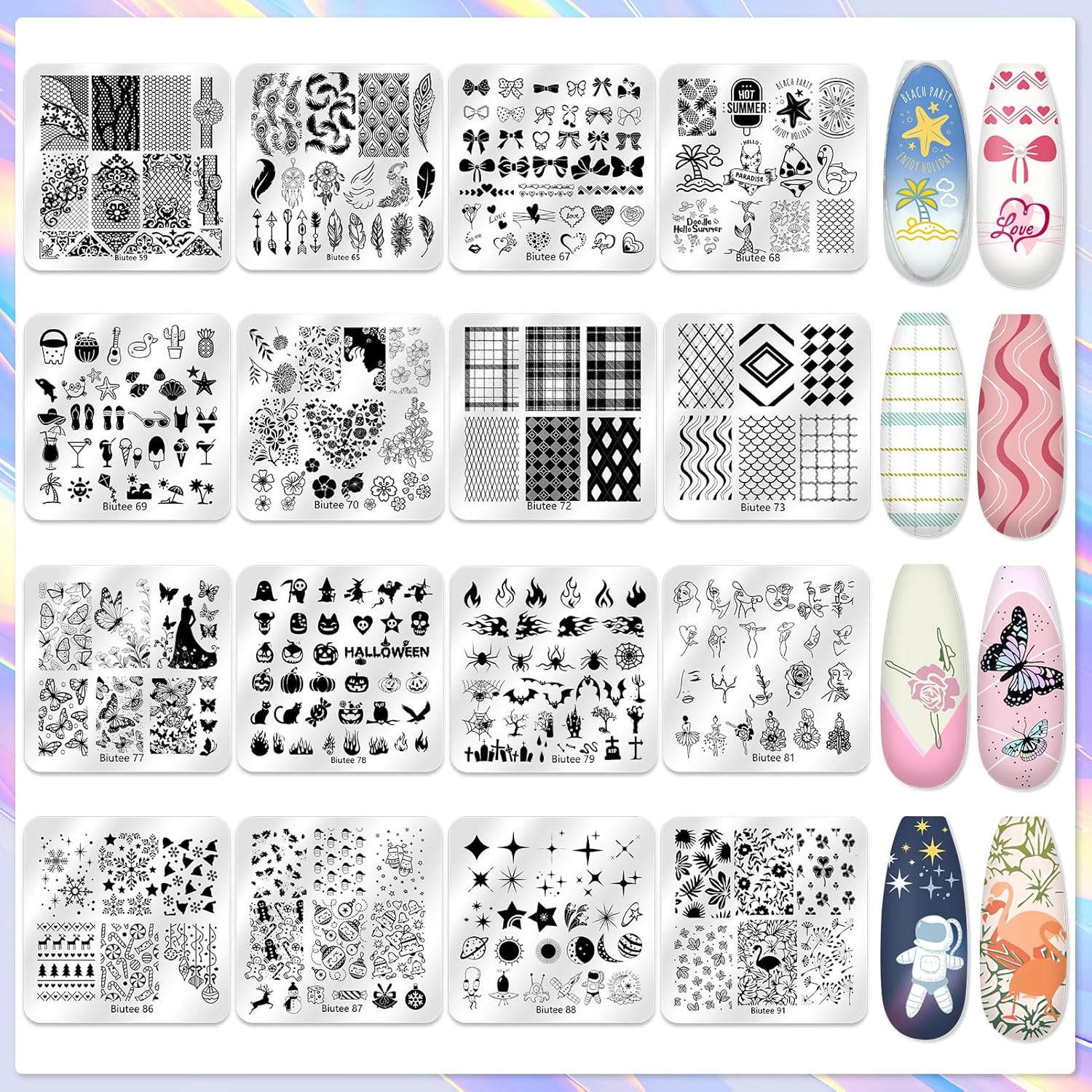 - 【 Stainless Steel Stamping Plates】The nail stamping plates are crafted from high-quality 304 stainless steel, ensuring long-lasting durability. Each plate is etched with precision to deliver crisp, clean designs with every use. The deep etching guarantees excellent image transfer, even for intricate patterns like lace, stars, and flowers.