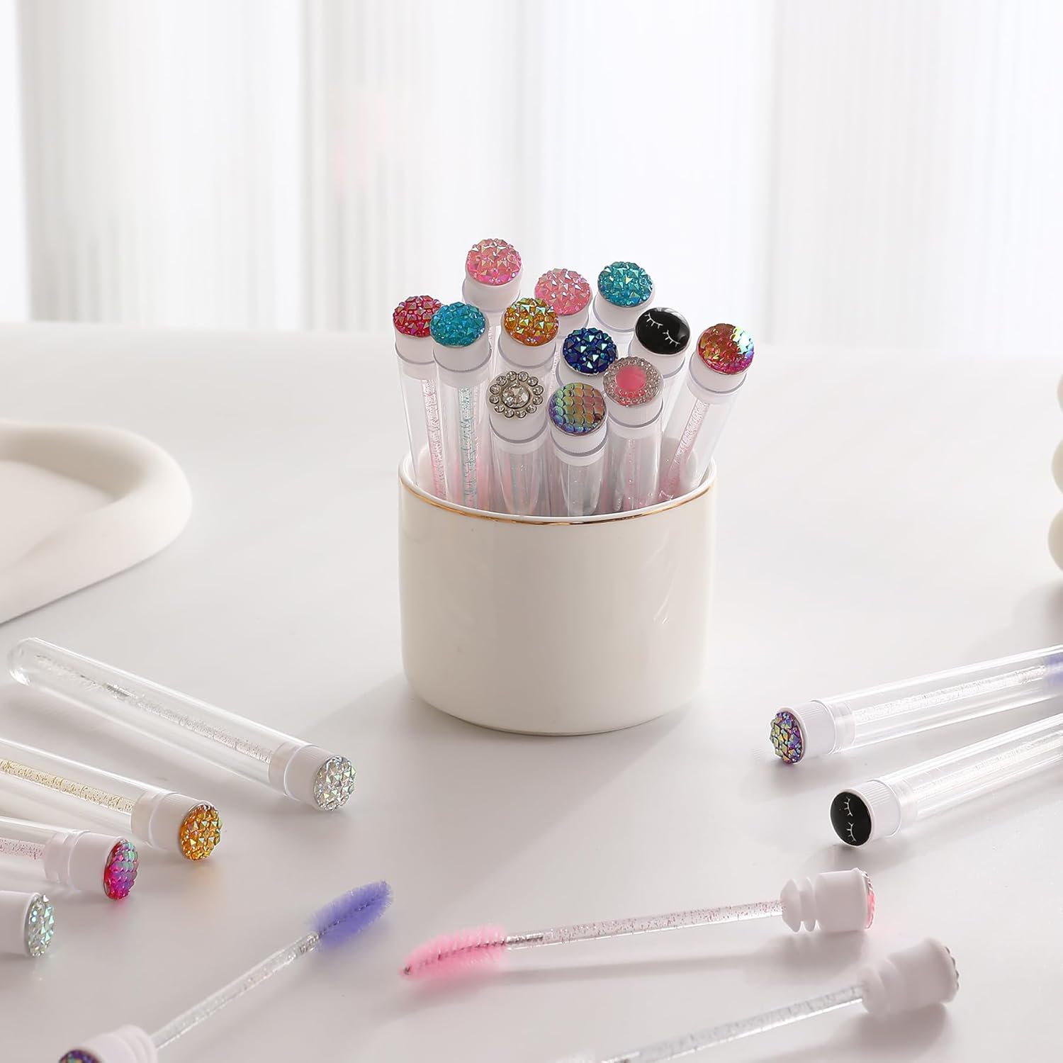 - Unique Design: With our eye-catching diamond detailing and practical design, our mascara brush set is not only functional but also a stylish accessory that will impress those around you. Whether you're at a party, on a date, or simply out with friends, our mascara brush set is sure to turn heads and spark conversations. Get ready to stand out and shine with our innovative beauty essential!
