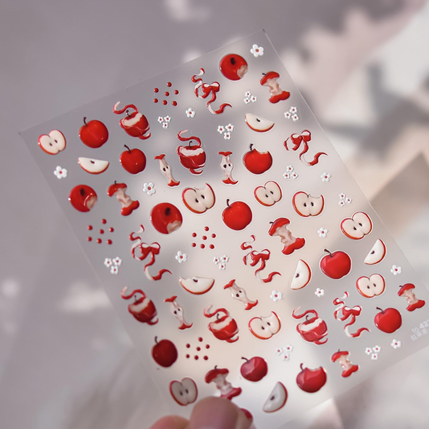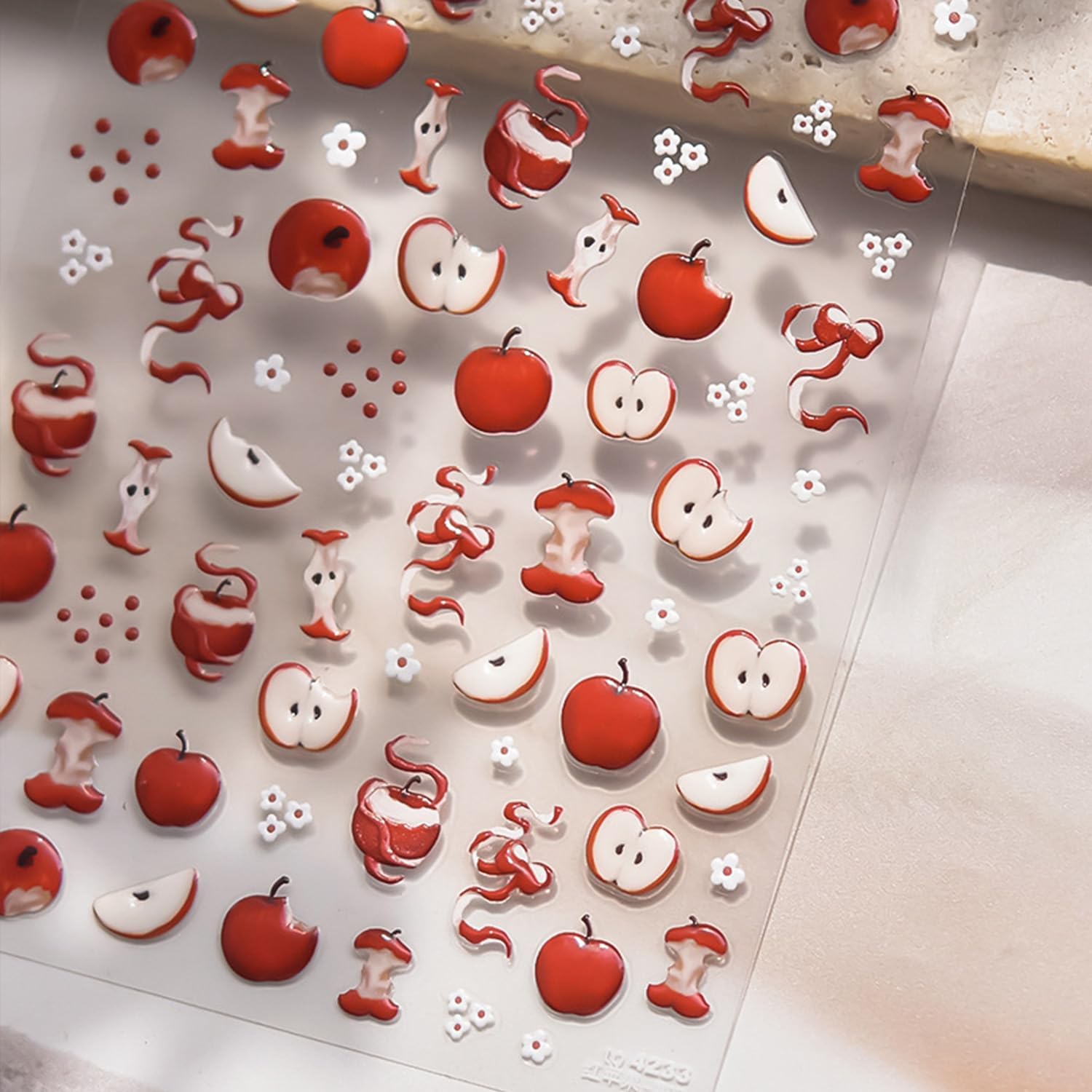 - Quantity:You will get 1 sheet apple nail art stickers decals for nail art,cute red apple flowers nail stickers, 3D self adhesive nail design which can offer you multiple choices, meet your nail decoration needs