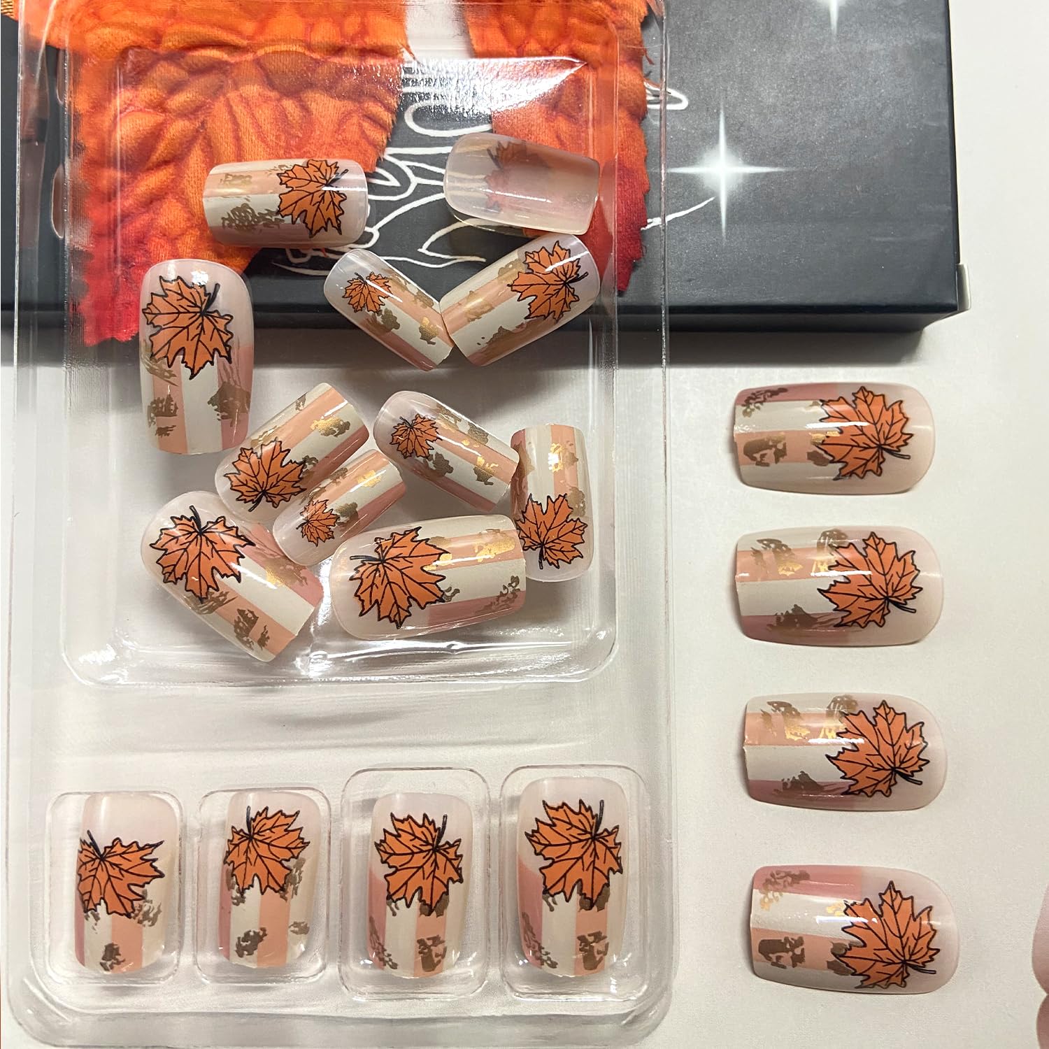 - Easy to Use: Instead of spend lots time and money at nail salon, you can change you nails style in 15 minutes anytime and anywhere. The maple leaves fake nails will stay longer if you clean your nails before use, and avoid water within the first hour of wearing